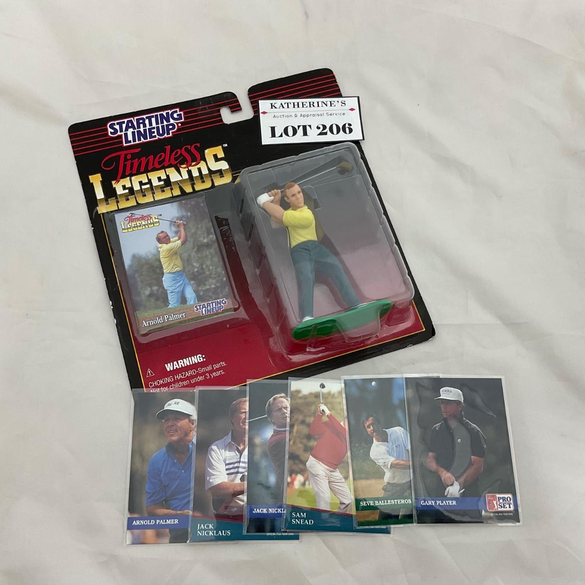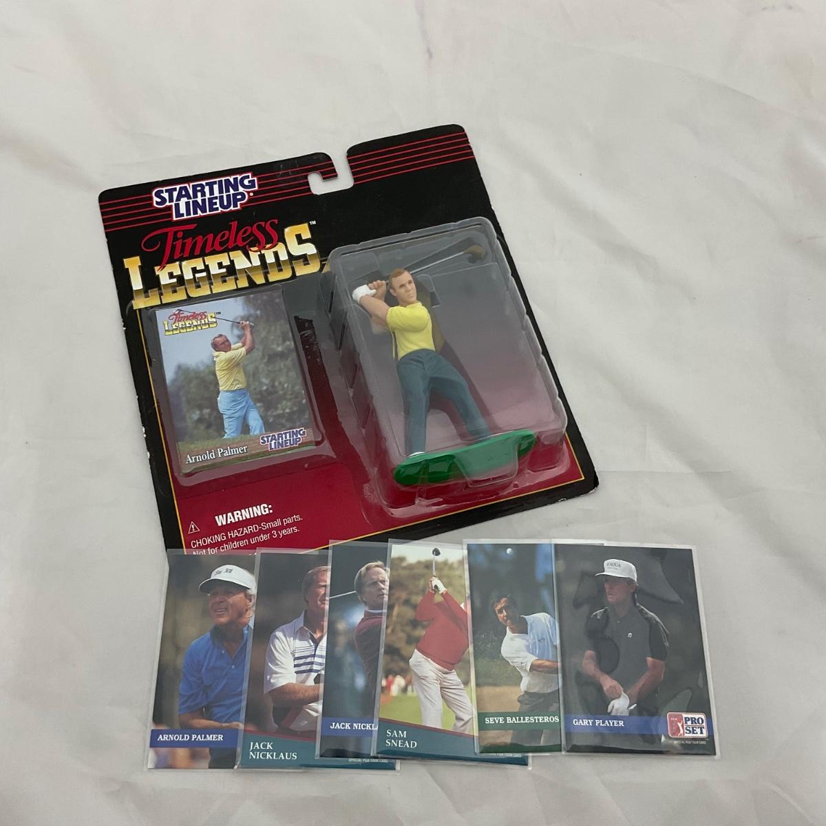 Six Golf collector cards and one Arnold Palmer starting lineup figure. Please see photos for details and condition. ::: Shipping is available on this lot. If you require shipping you must let us know at the close of the auction. We will coordinate with you after the item has been won. Shipping fees will include insurance up to or exceeding the value of all items being mailed. If you have any questions regarding this lot please contact the auctioneer either via this website, by direct email or by phone. PICK UP TIMES and other important information can be found in the TERMS and DESCRIPTION of the auction. Please take a look for pertinent information. Thanks!