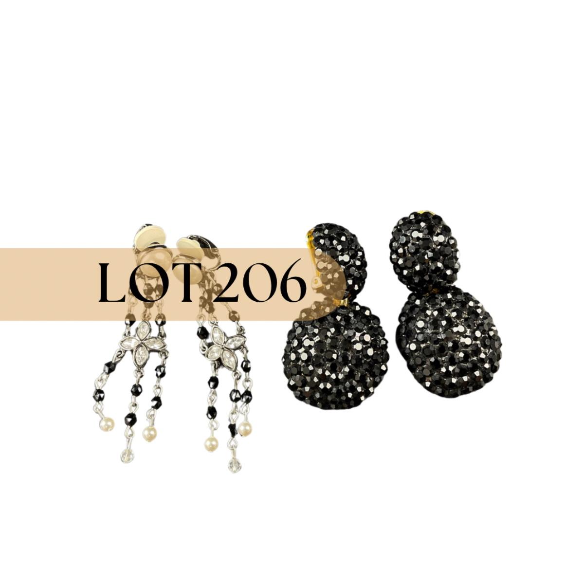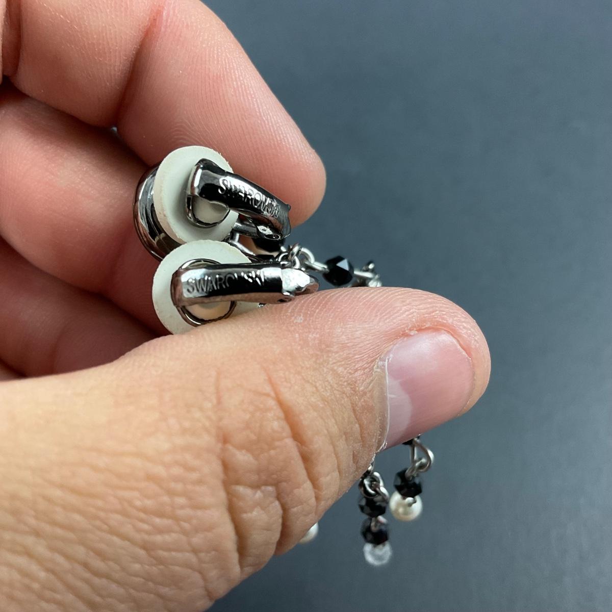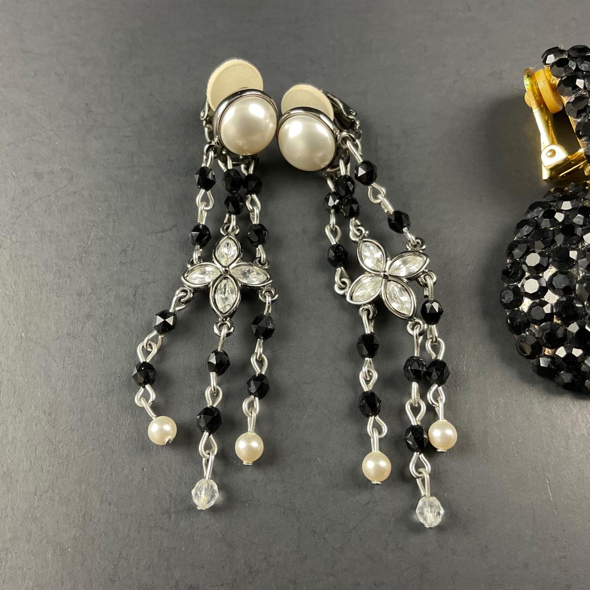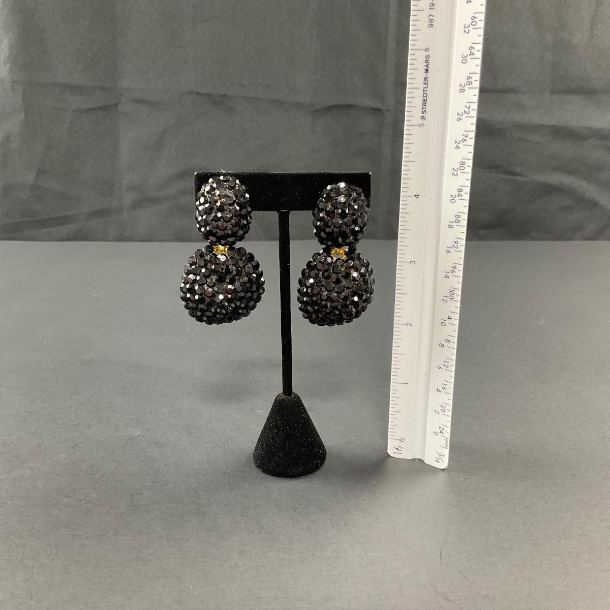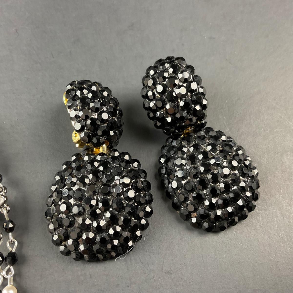 Two pairs of black and white clip costume jewelry earrings. One pair appears to be an unmarked pair of Swarovski clipped earrings. This piece has no damage, and appears to be in great shape with no visable chips, cracks, or broken pieces. Please see photos for details and condition. Any condition statement is given as a courtesy to a client, is an opinion, and should not be treated as a statement of fact. Reference to condition written, oral or within a condition report shall not be regarded as a full account of condition and may not include all defects, alterations, or restorations. Absence of a condition report does not imply a lot is flawless or lacking imperfections or damage. Katherine’s Auction & Appraisal Service shall have no responsibility for any error or omission. Returns shall not be accepted on the basis of condition. ::: Shipping is available on this lot. If you require shipping you must let us know at the close of the auction. We will coordinate with you after the item has been won. Shipping fees will include insurance up to or exceeding the value of all items being mailed. If you have any questions regarding this lot please contact the auctioneer either via this website, by direct email or by phone. PICK UP TIMES and other important information can be found in the TERMS and DESCRIPTION of the auction. Please take a look for pertinent information. Thanks!