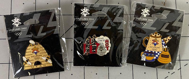 #206 Three 2002 Olympic Pins (Beehive, Teapot, Firemen)
