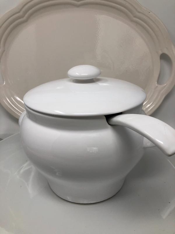 207:  Soup Bowl With Ladle, Candlesticks, Serving Tray and More