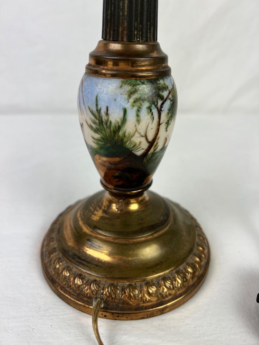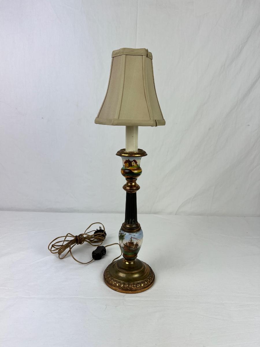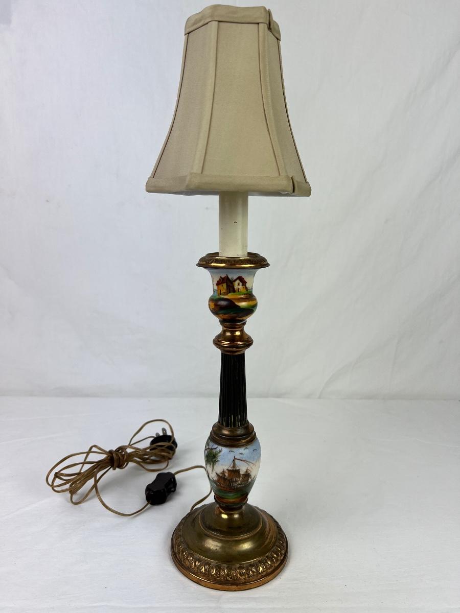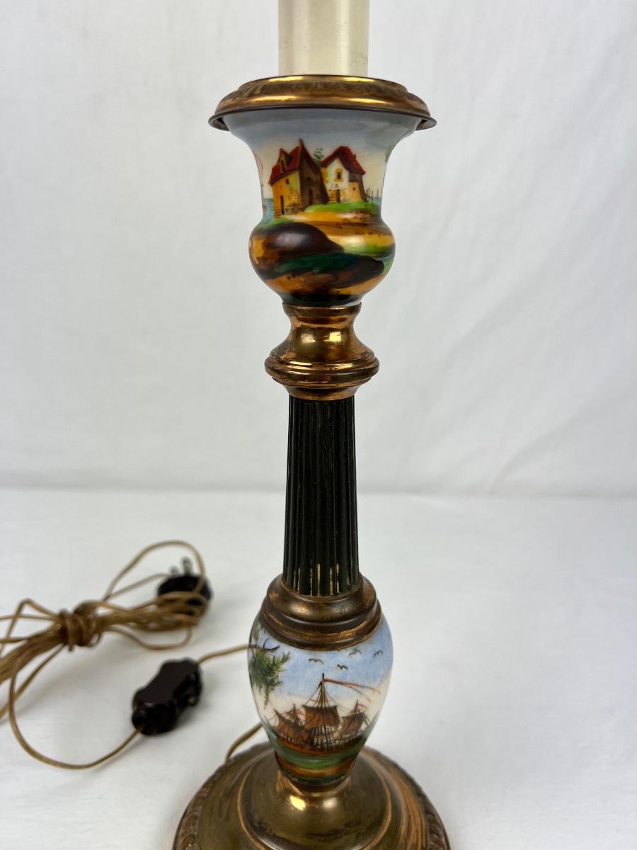 207. Antique Handpainted Porcelain Scenic Candlestick Lamp