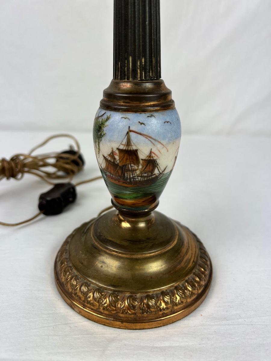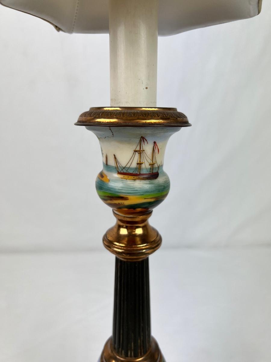 Antique Handpainted Porcelain Nautical Ship Scenic Candlestick Lamp,