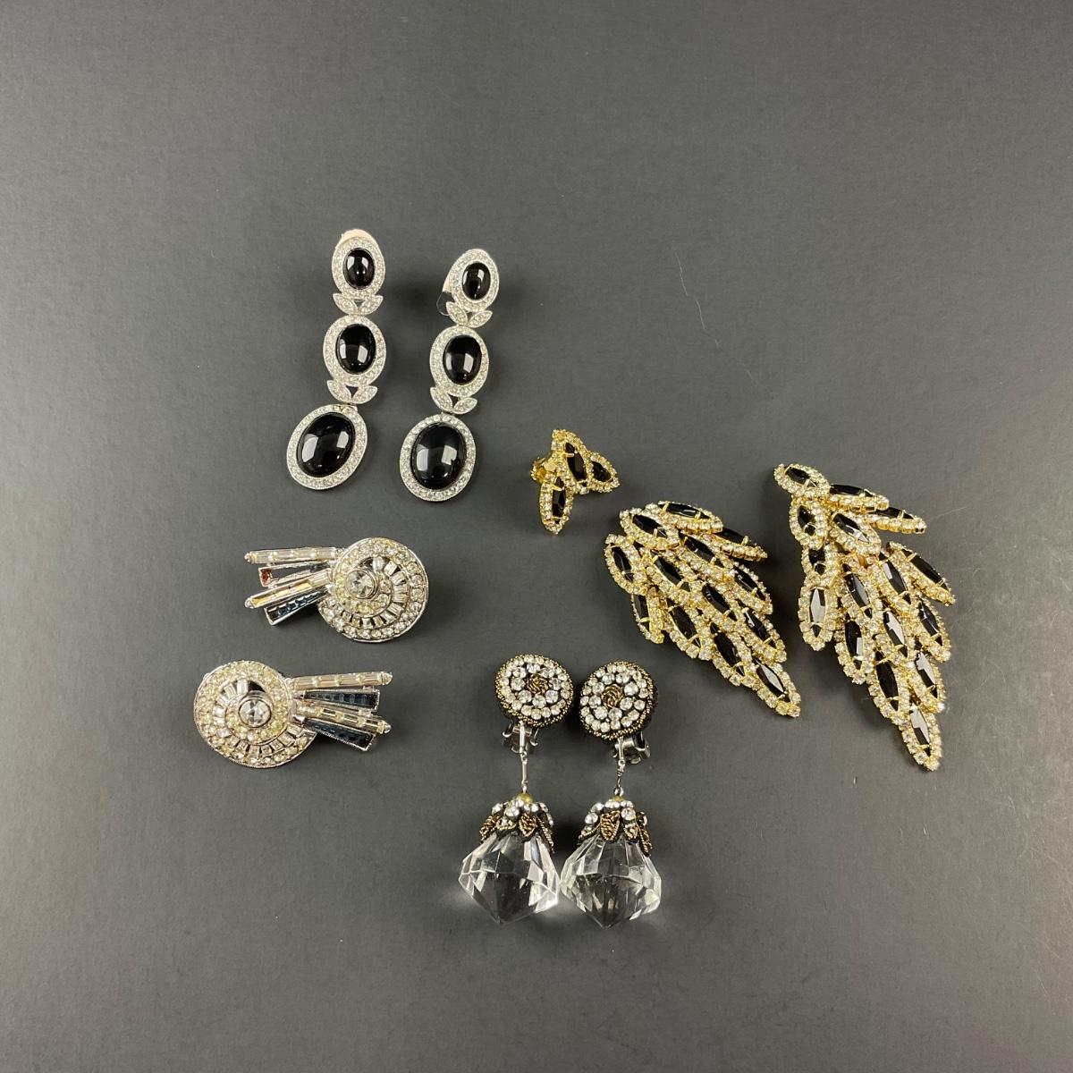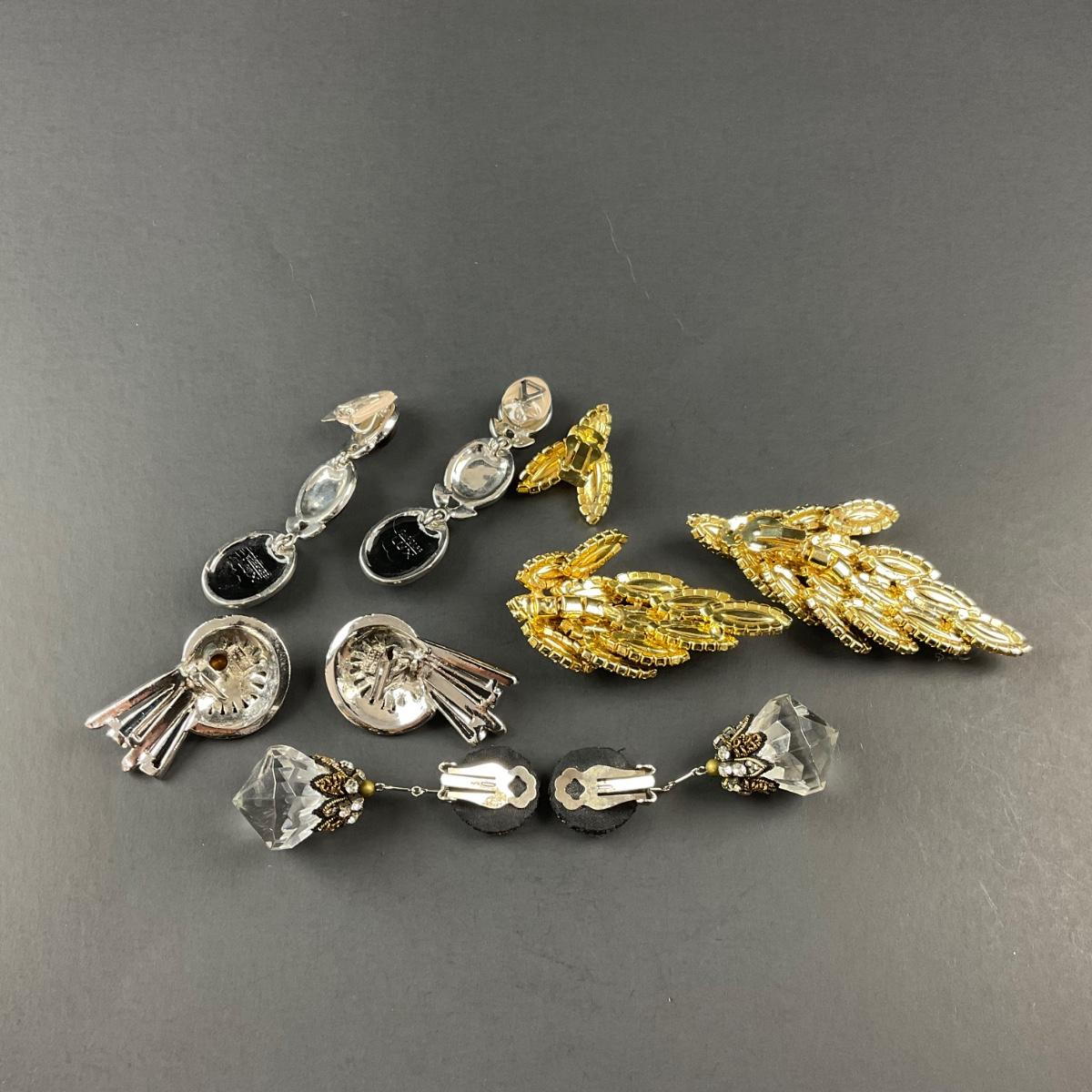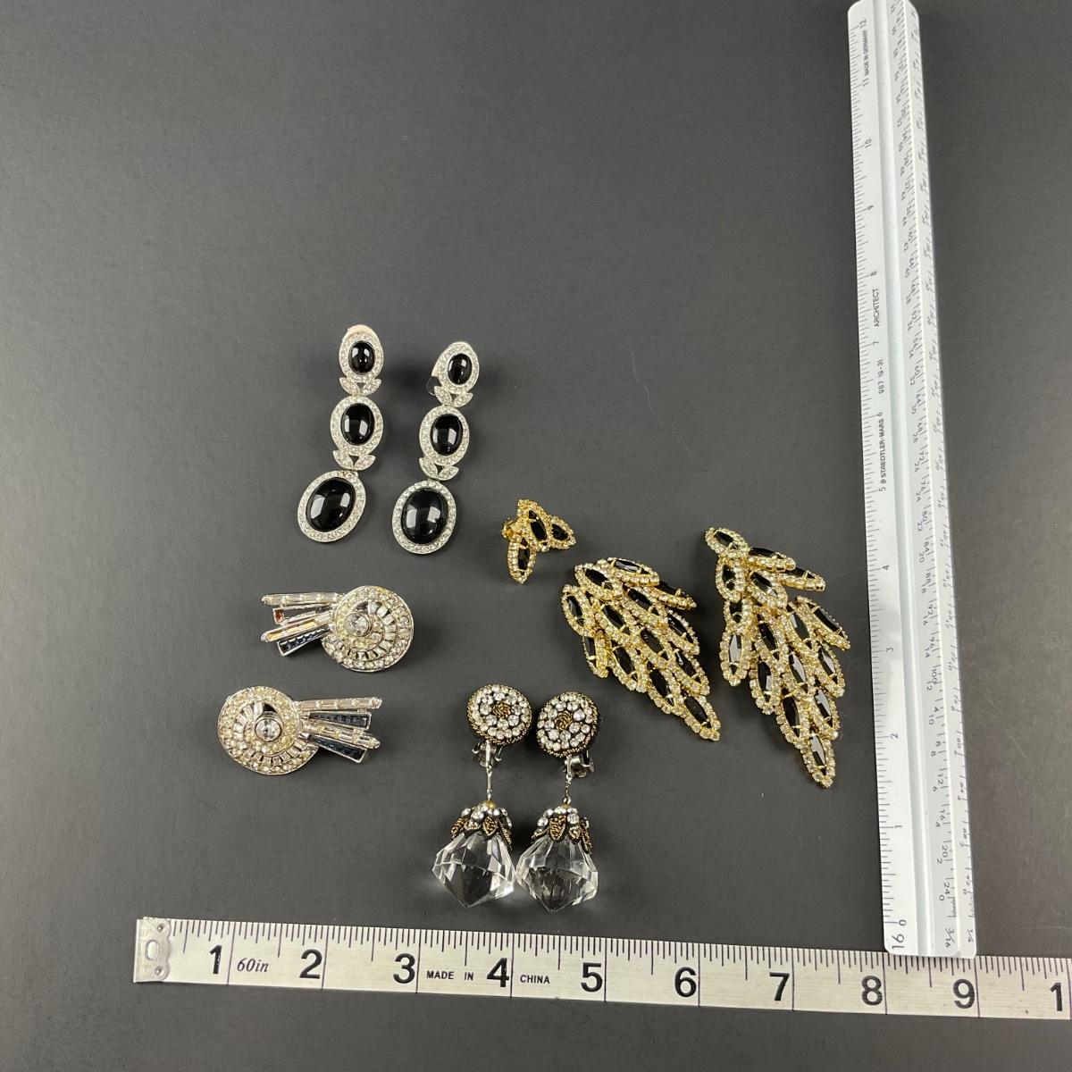 Four pairs of costume jewelry earrings some of them appear to have a good amount of damage. Some of the names of these pieces include Weinberg New York, and Carolee. Please see photos for details and condition. Any condition statement is given as a courtesy to a client, is an opinion, and should not be treated as a statement of fact. Reference to condition written, oral or within a condition report shall not be regarded as a full account of condition and may not include all defects, alterations, or restorations. Absence of a condition report does not imply a lot is flawless or lacking imperfections or damage. Katherine’s Auction & Appraisal Service shall have no responsibility for any error or omission. Returns shall not be accepted on the basis of condition. ::: Shipping is available on this lot. If you require shipping you must let us know at the close of the auction. We will coordinate with you after the item has been won. Shipping fees will include insurance up to or exceeding the value of all items being mailed. If you have any questions regarding this lot please contact the auctioneer either via this website, by direct email or by phone. PICK UP TIMES and other important information can be found in the TERMS and DESCRIPTION of the auction. Please take a look for pertinent information. Thanks!