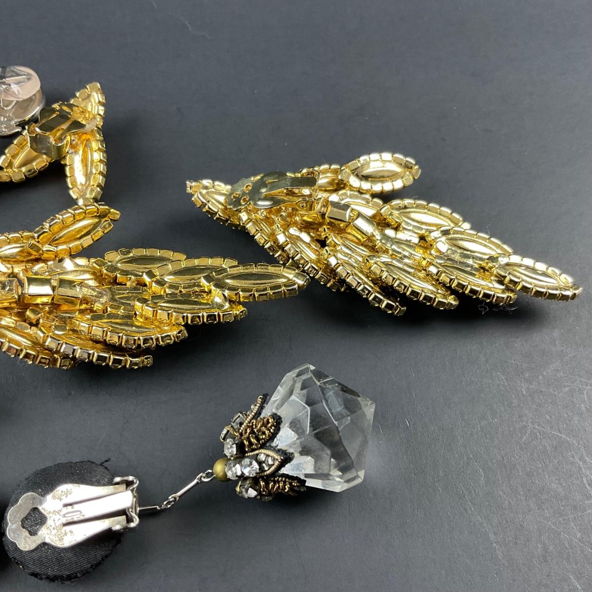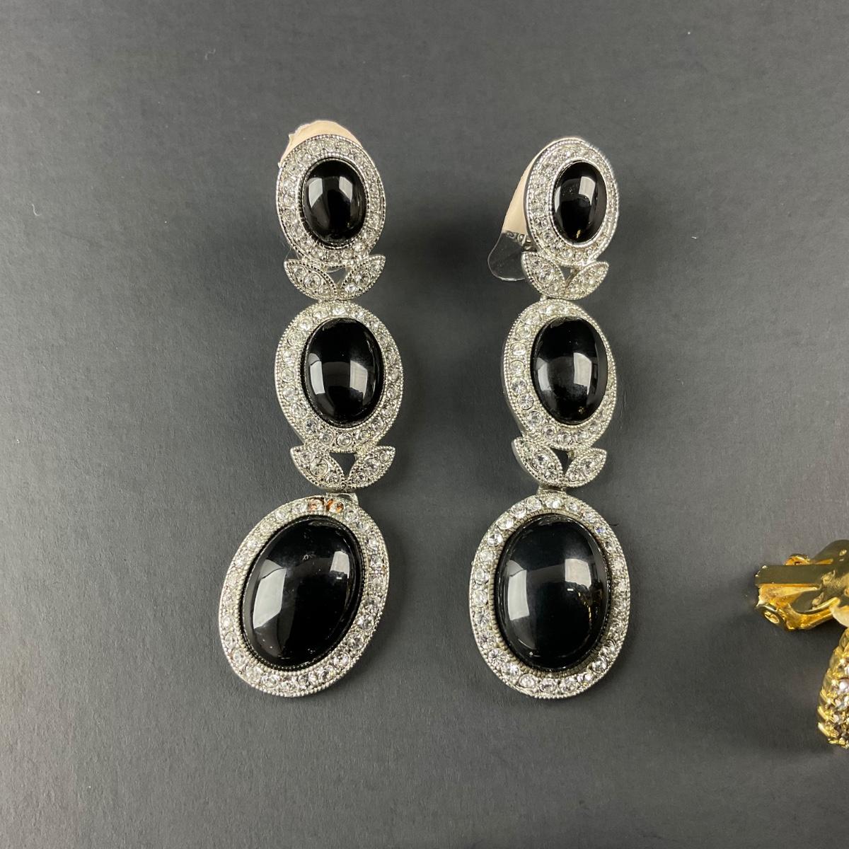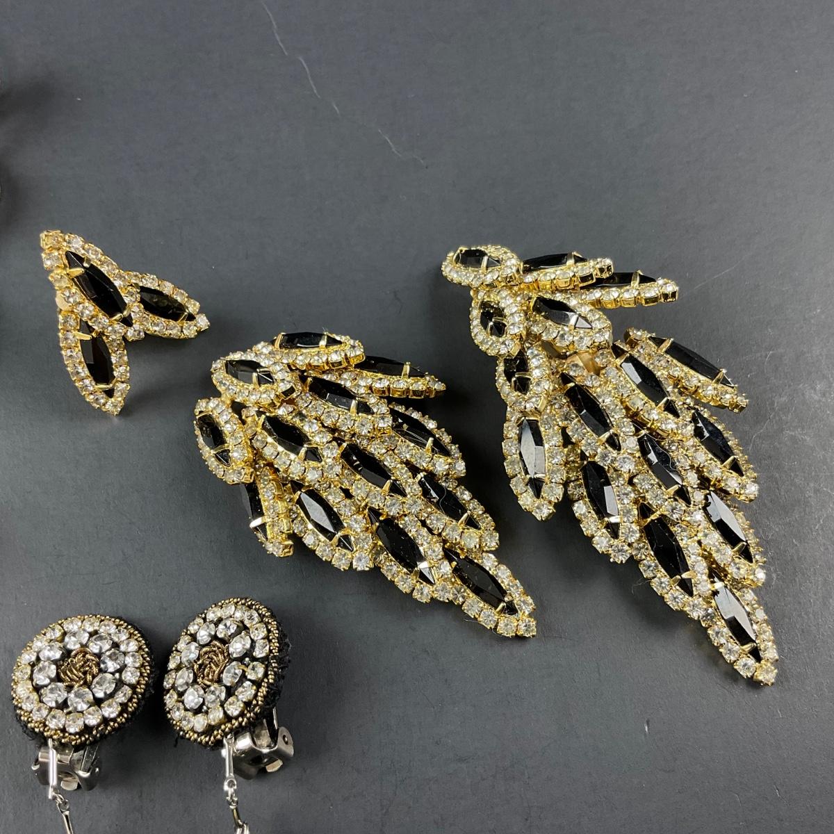 Four pairs of costume jewelry earrings some of them appear to have a good amount of damage. Some of the names of these pieces include Weinberg New York, and Carolee. Please see photos for details and condition. Any condition statement is given as a courtesy to a client, is an opinion, and should not be treated as a statement of fact. Reference to condition written, oral or within a condition report shall not be regarded as a full account of condition and may not include all defects, alterations, or restorations. Absence of a condition report does not imply a lot is flawless or lacking imperfections or damage. Katherine’s Auction & Appraisal Service shall have no responsibility for any error or omission. Returns shall not be accepted on the basis of condition. ::: Shipping is available on this lot. If you require shipping you must let us know at the close of the auction. We will coordinate with you after the item has been won. Shipping fees will include insurance up to or exceeding the value of all items being mailed. If you have any questions regarding this lot please contact the auctioneer either via this website, by direct email or by phone. PICK UP TIMES and other important information can be found in the TERMS and DESCRIPTION of the auction. Please take a look for pertinent information. Thanks!