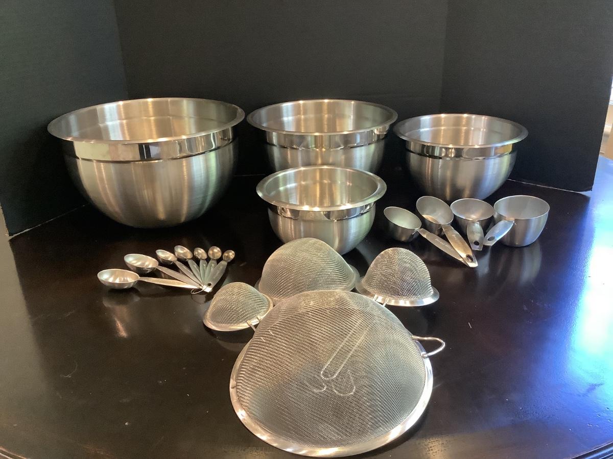207 Heavy Duty Kirkland Nesting Mixing Bowls, Spoons , and Strainers