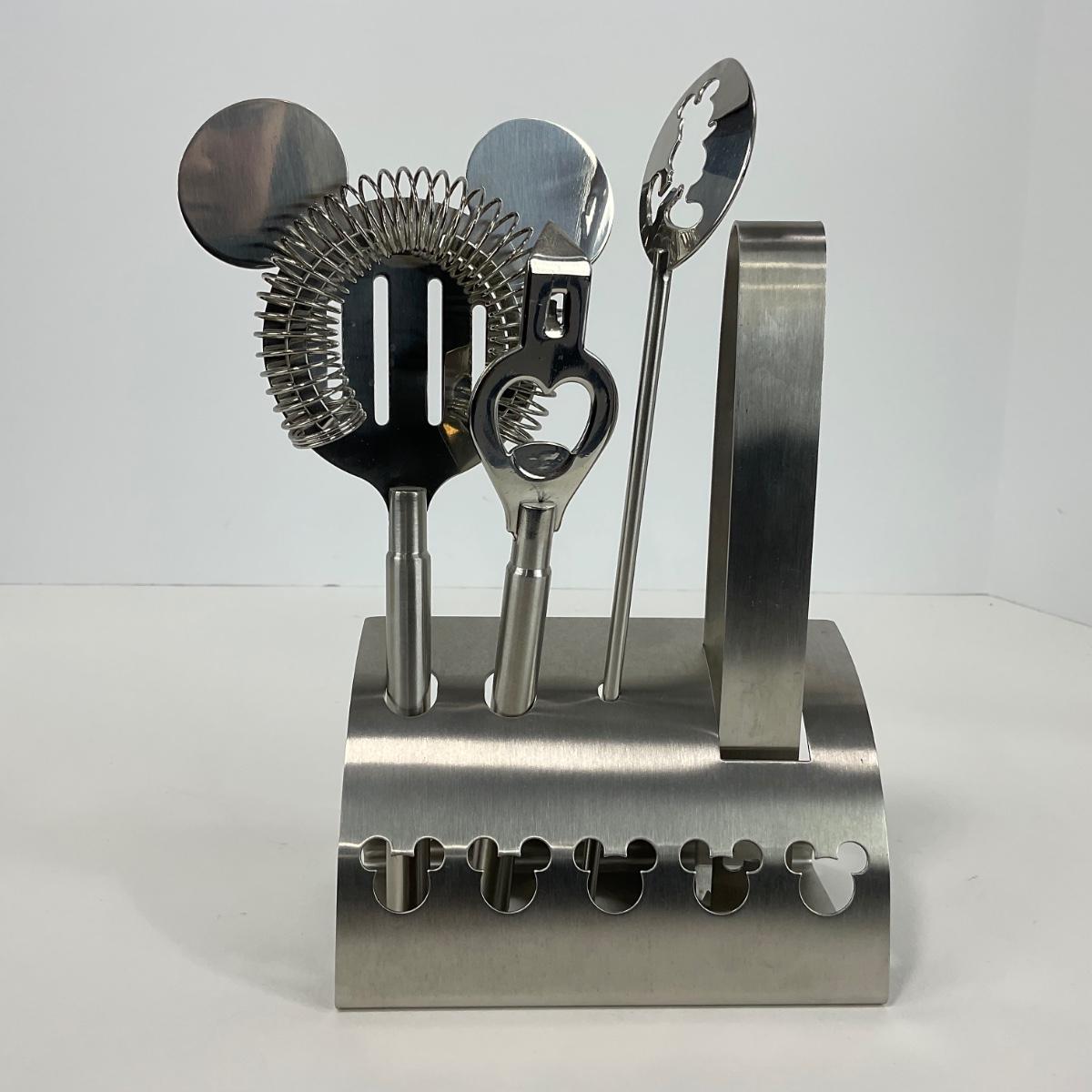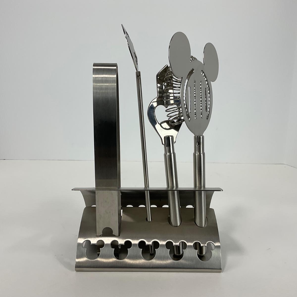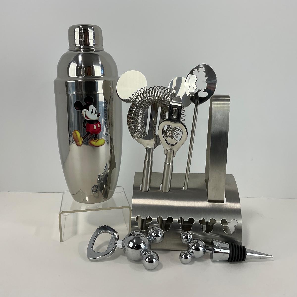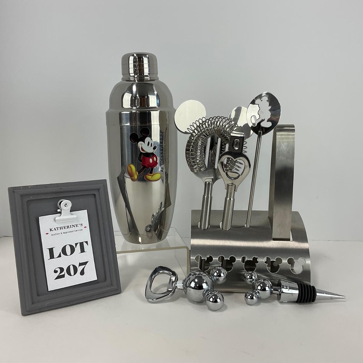 Set of Mickey Mouse kitchen drink tools. Shaker, display and mix drink tools, bottle opener, and wine bottle stopper. All appear to be in good shape. Please see photos for details and condition. Any condition statement is given as a courtesy to a client, is an opinion, and should not be treated as a statement of fact. Reference to condition written, oral or within a condition report shall not be regarded as a full account of condition and may not include all defects, alterations, or restorations. Absence of a condition report does not imply a lot is flawless or lacking imperfections or damage. Katherine’s Auction & Appraisal Service shall have no responsibility for any error or omission. Returns shall not be accepted on the basis of condition. ::: Shipping is available on this lot. If you require shipping you must let us know at the close of the auction. We will coordinate with you after the item has been won. Shipping fees will include insurance up to or exceeding the value of all items being mailed. If you have any questions regarding this lot please contact the auctioneer either via this website, by direct email or by phone. PICK UP TIMES and other important information can be found in the TERMS and DESCRIPTION of the auction. Please take a look for pertinent information. Thanks!