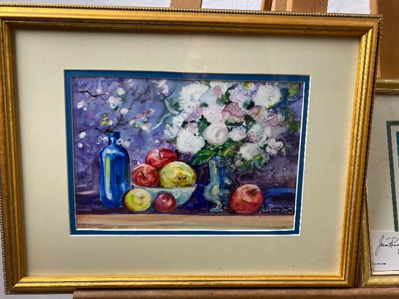 1) Fruit with Flowers in gold frame 17.5” x 13.75”