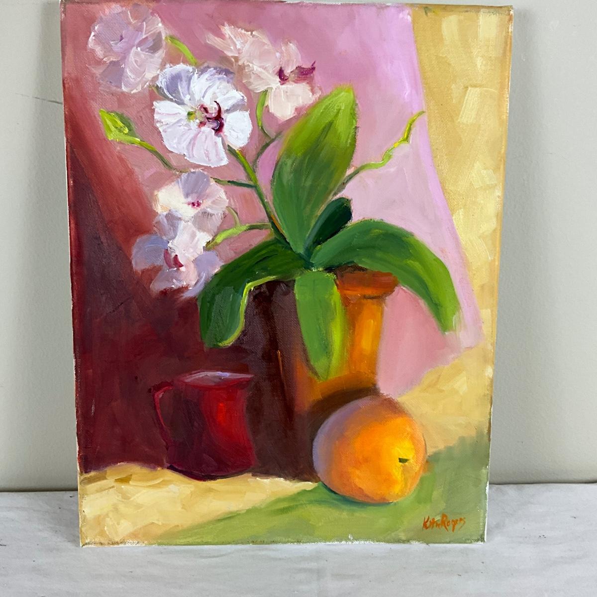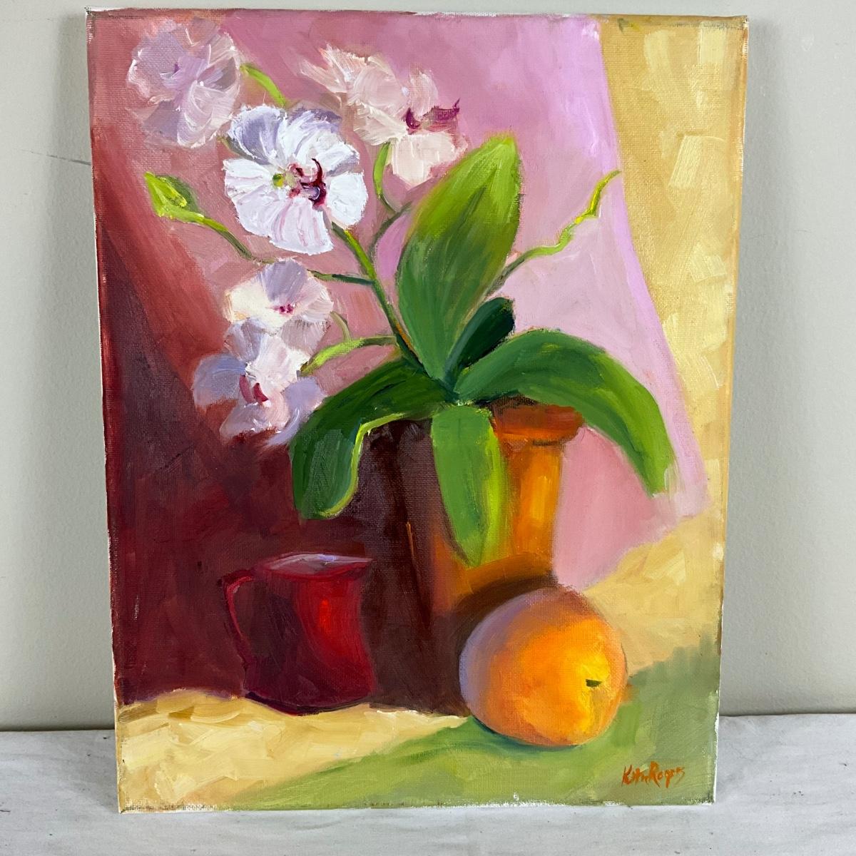 207 Original Oil Painting " Peach & Orchid" by Kathie Rogers