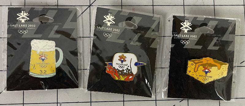 #207 Three 2002 Olympic Pins (Beer Mug, Marshmallow)