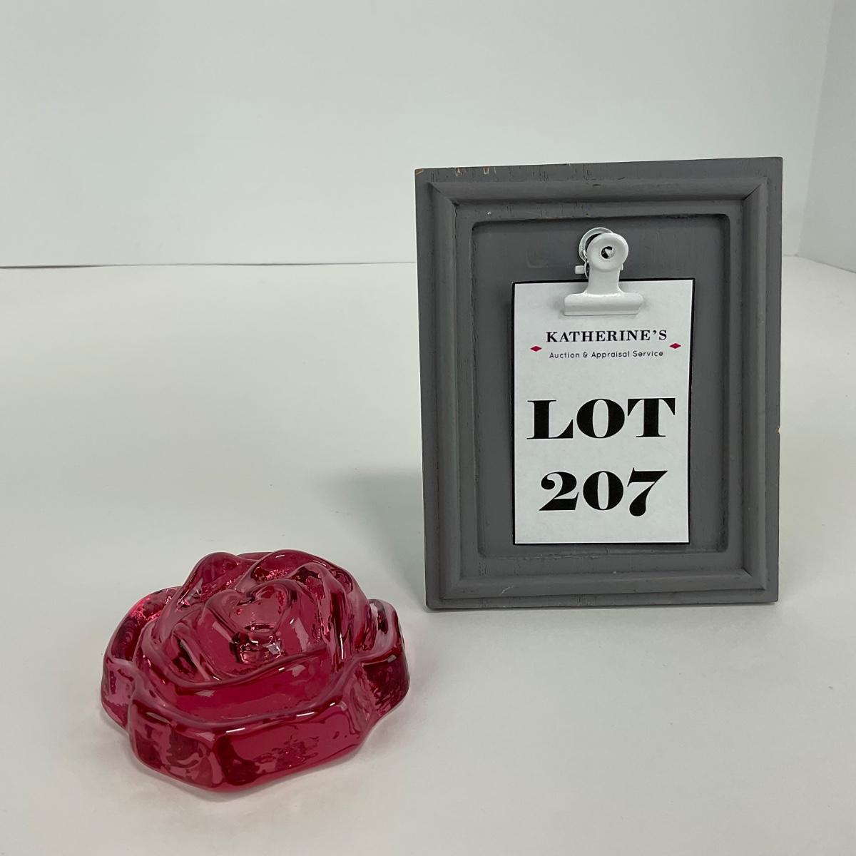 One Unmarked pink rose paperweight. This piece has no damage, and appears to be in great shape with no visable chips, cracks, or broken pieces. 1 inch tall by 3 1/4 inches wide. Please see photos for details and condition. Any condition statement is given as a courtesy to a client, is an opinion, and should not be treated as a statement of fact. Reference to condition written, oral or within a condition report shall not be regarded as a full account of condition and may not include all defects, alterations, or restorations. Absence of a condition report does not imply a lot is flawless or lacking imperfections or damage. Katherine’s Auction & Appraisal Service shall have no responsibility for any error or omission. Returns shall not be accepted on the basis of condition. ::: Shipping is available on this lot. If you require shipping you must let us know at the close of the auction. We will coordinate with you after the item has been won. Shipping fees will include insurance up to or exceeding the value of all items being mailed. If you have any questions regarding this lot please contact the auctioneer either via this website, by direct email or by phone. PICK UP TIMES and other important information can be found in the TERMS and DESCRIPTION of the auction. Please take a look for pertinent information. Thanks!