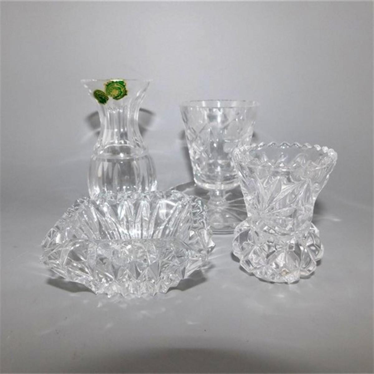 208 Lot of 4 Small Crystal Items ~ Toothpick Holders / Match Holders / Ash Tray / Etc