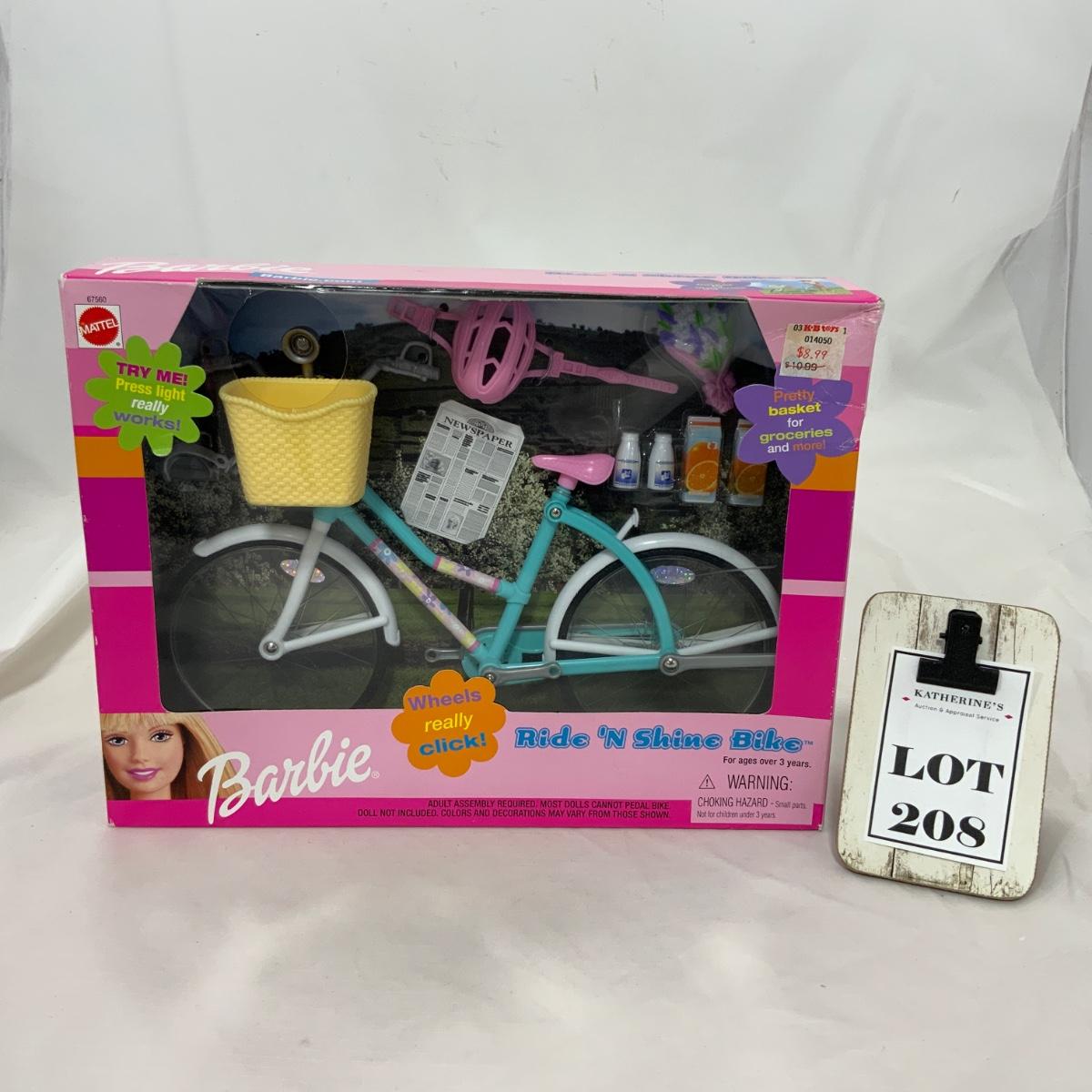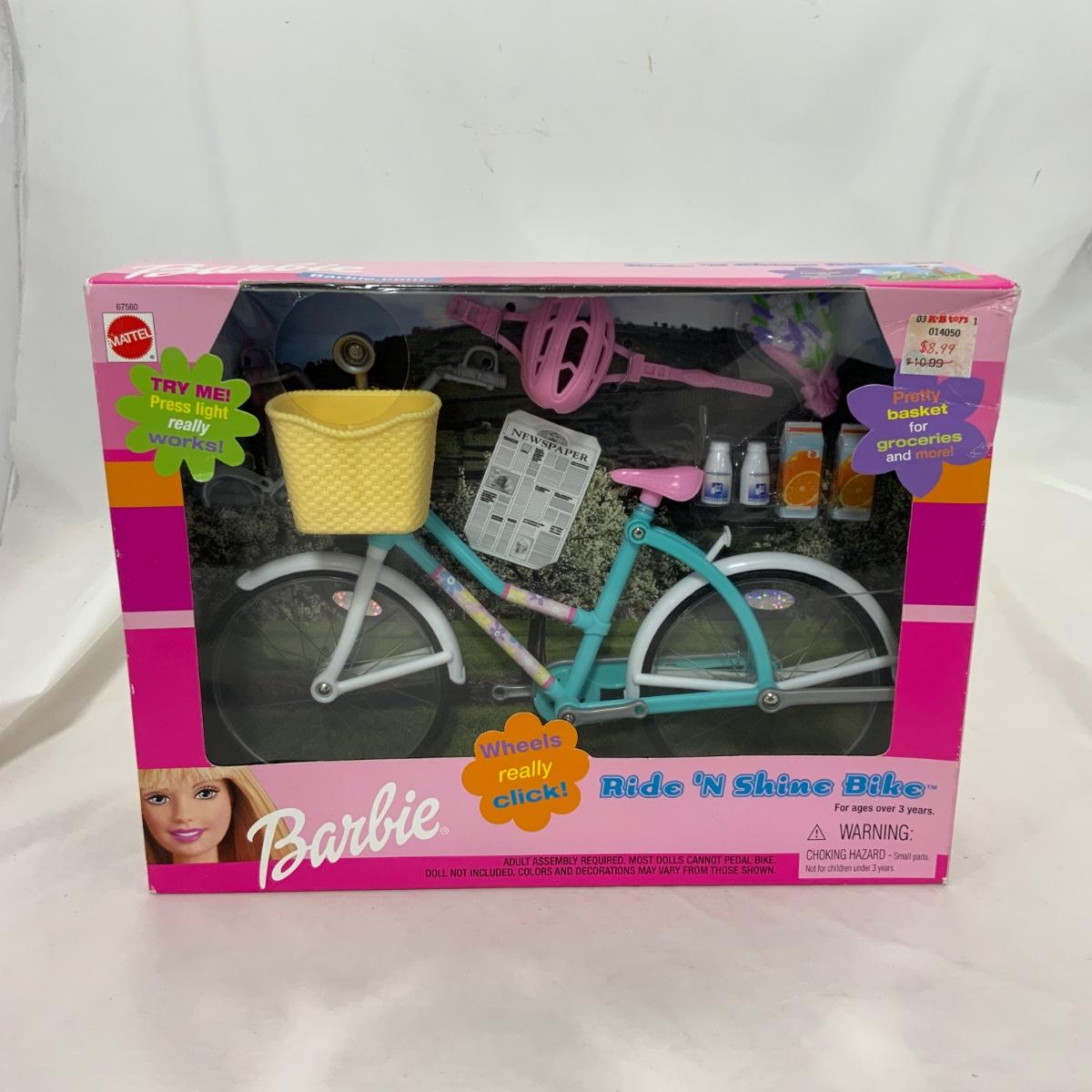 Ride “˜N Shine Bike, released in 2000 by Mattel for Barbie and her friends to ride. Pretty neat that it has a basket and a light! Bike is new, in box. Please see photos for details and condition. !!! Proceeds from this auction will be donated to the NEW COMMUNITY SHELTER in Green Bay, Wisconsin. Please see Sale Description to the Left for more information. !!! ::: Shipping is available on this lot. If you require shipping you must let us know at the close of the auction. We will coordinate with you after the item has been won. Shipping fees will include insurance up to or exceeding the value of all items being mailed. If you have any questions regarding this lot please contact the auctioneer either via this website, by direct email or by phone. PICK UP TIMES and other important information can be found in the TERMS and DESCRIPTION of the auction. Please take a look for pertinent information. Thanks!