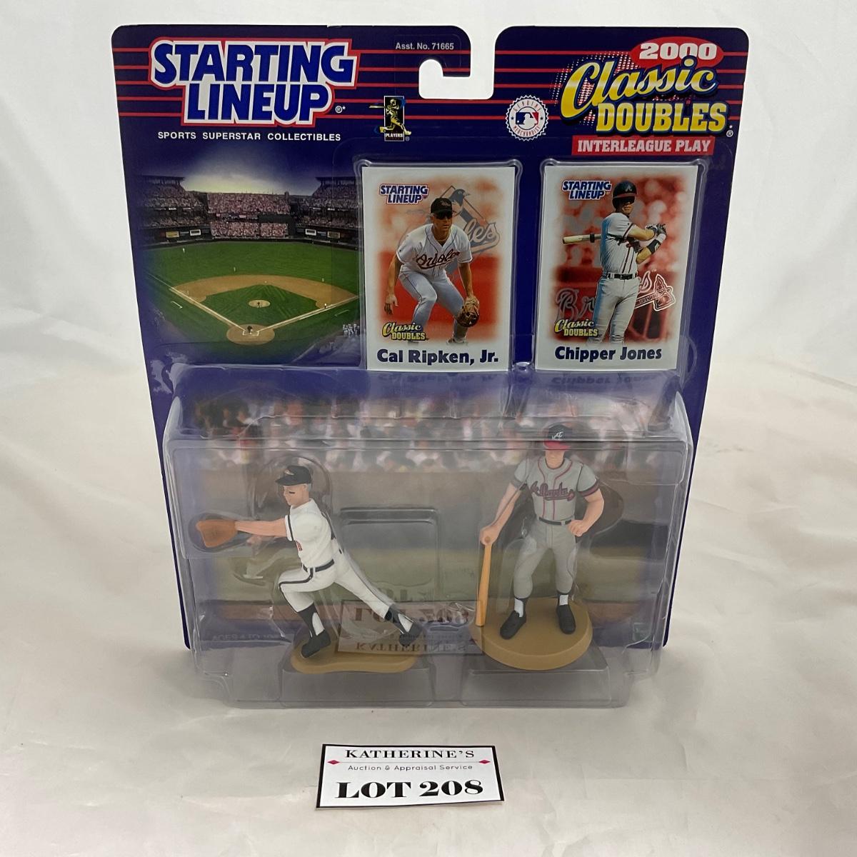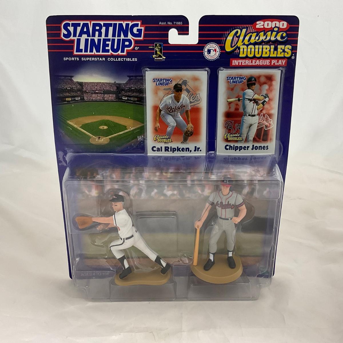 One 2000 Starting Lineup Classic Doubles | Cal Ripken Jr. And Chipper Jones. Please see photos for details and condition. ::: Shipping is available on this lot. If you require shipping you must let us know at the close of the auction. We will coordinate with you after the item has been won. Shipping fees will include insurance up to or exceeding the value of all items being mailed. If you have any questions regarding this lot please contact the auctioneer either via this website, by direct email or by phone. PICK UP TIMES and other important information can be found in the TERMS and DESCRIPTION of the auction. Please take a look for pertinent information. Thanks!