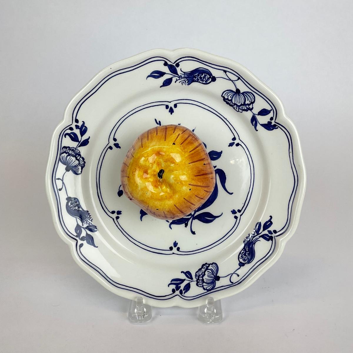 208 Tiffany & Co. Blue Floral Plate with Apple Center Piece