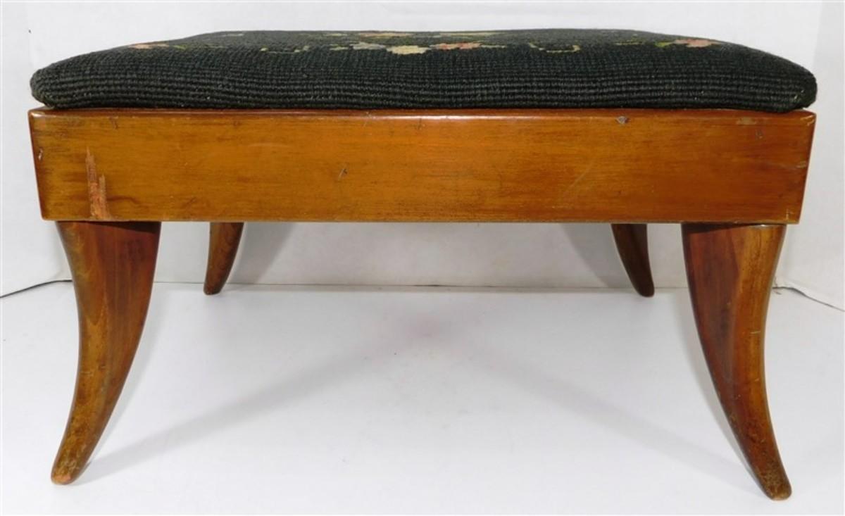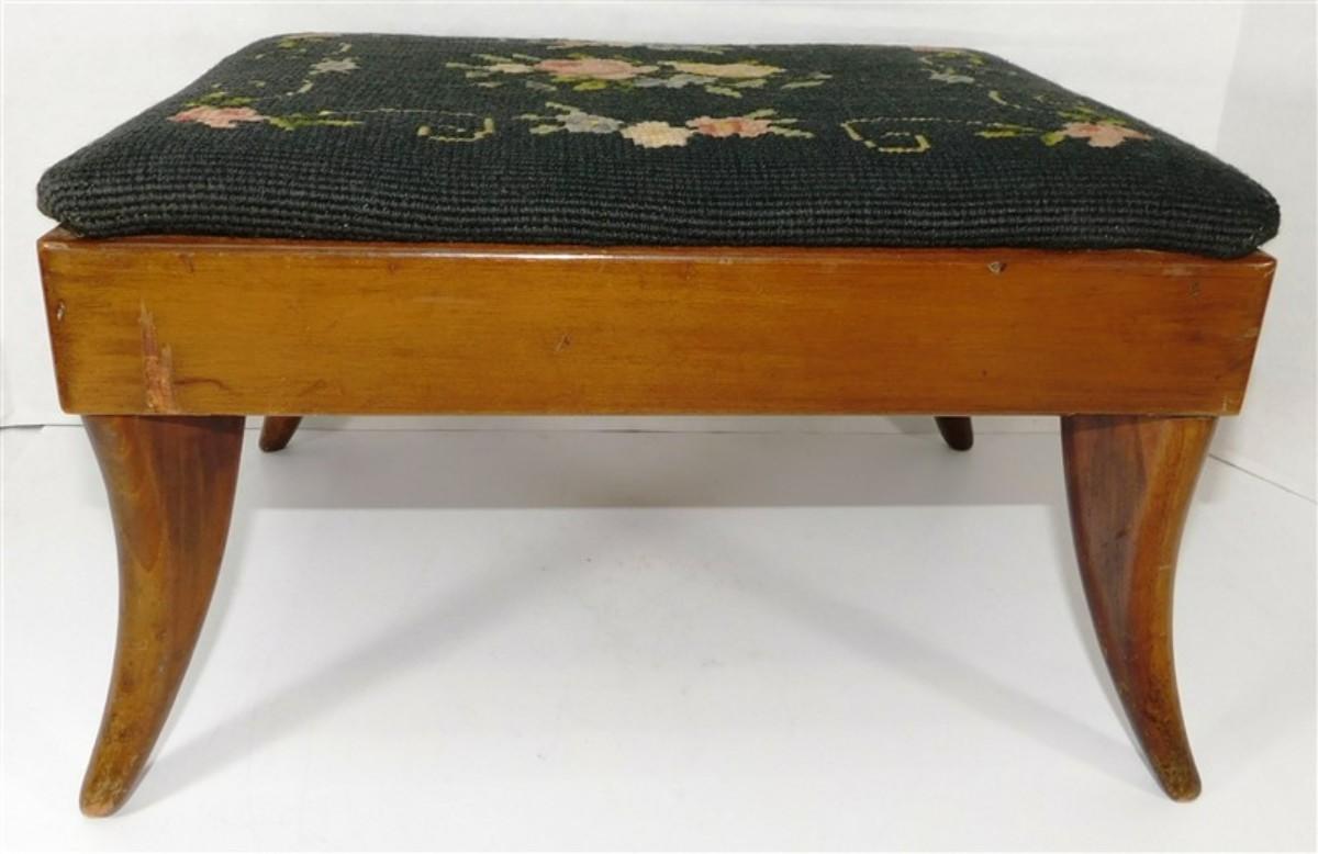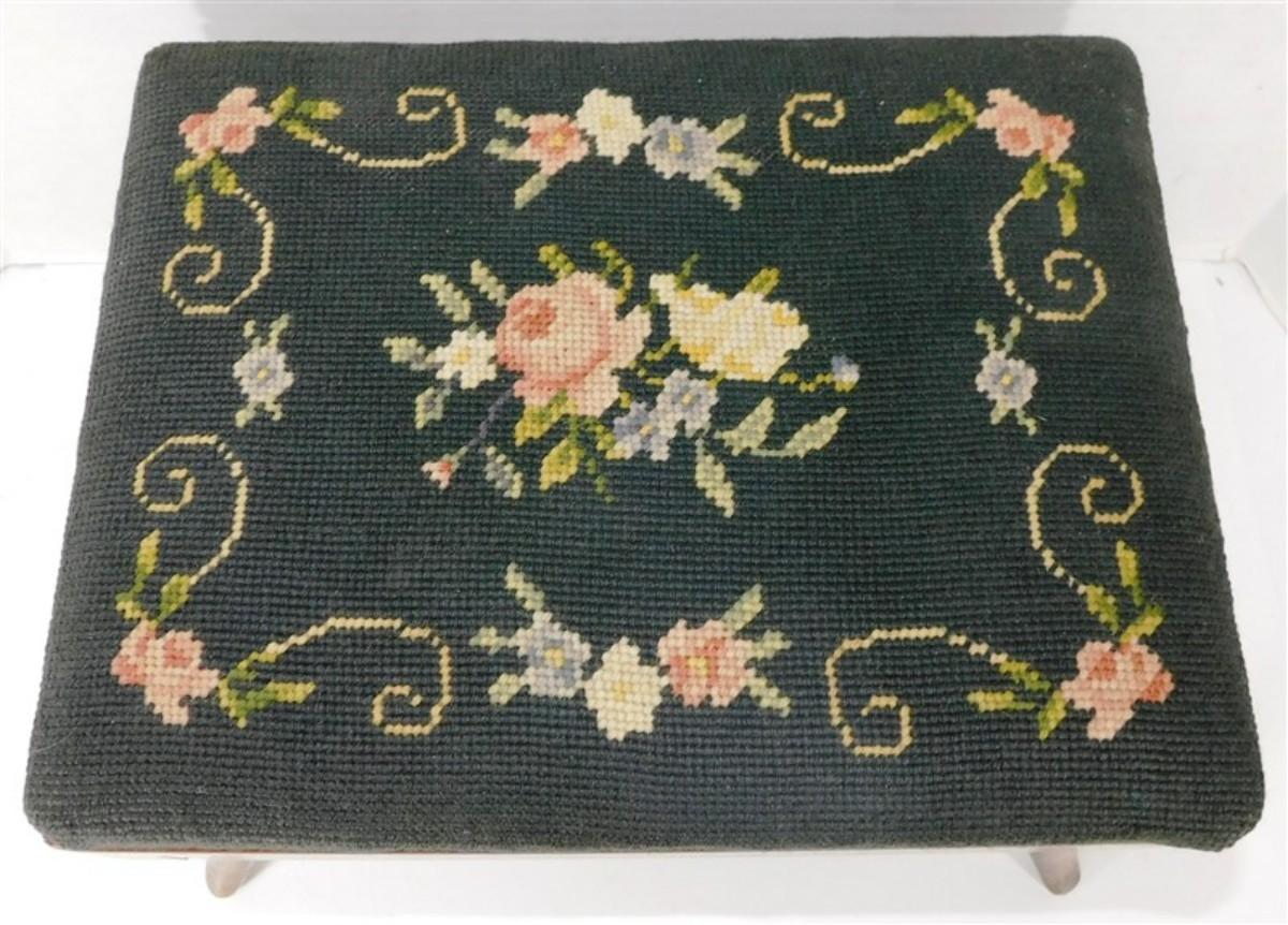 208 Wooden Footstool Flora Needlepoint by Bernhard Ulmann Company 13 1/2 x 10 1/2 x 8