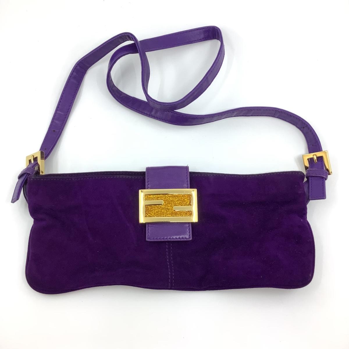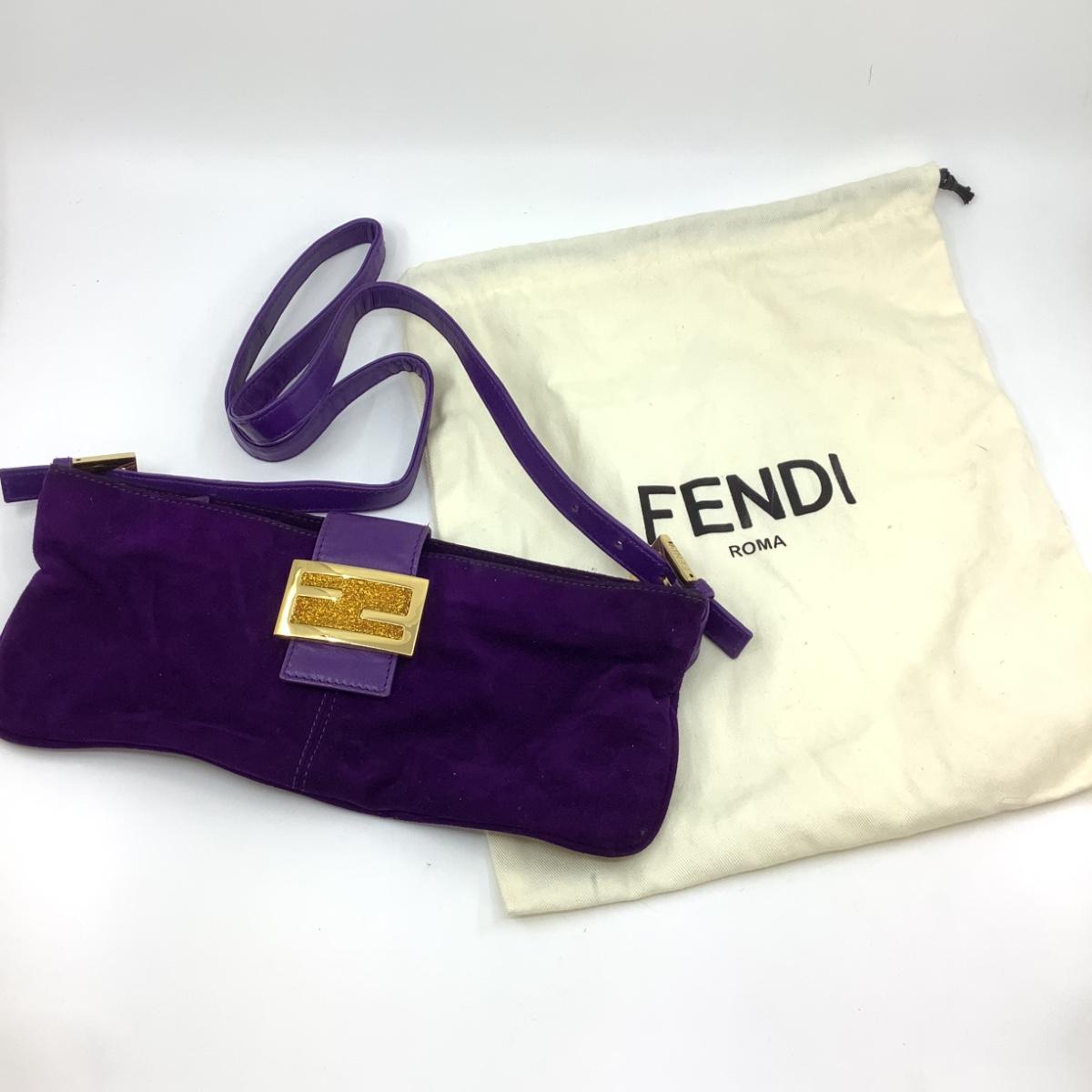209 FENDI Baguette Purple Suede Bag w/ Shoulder Strap