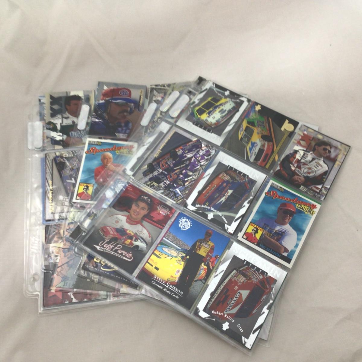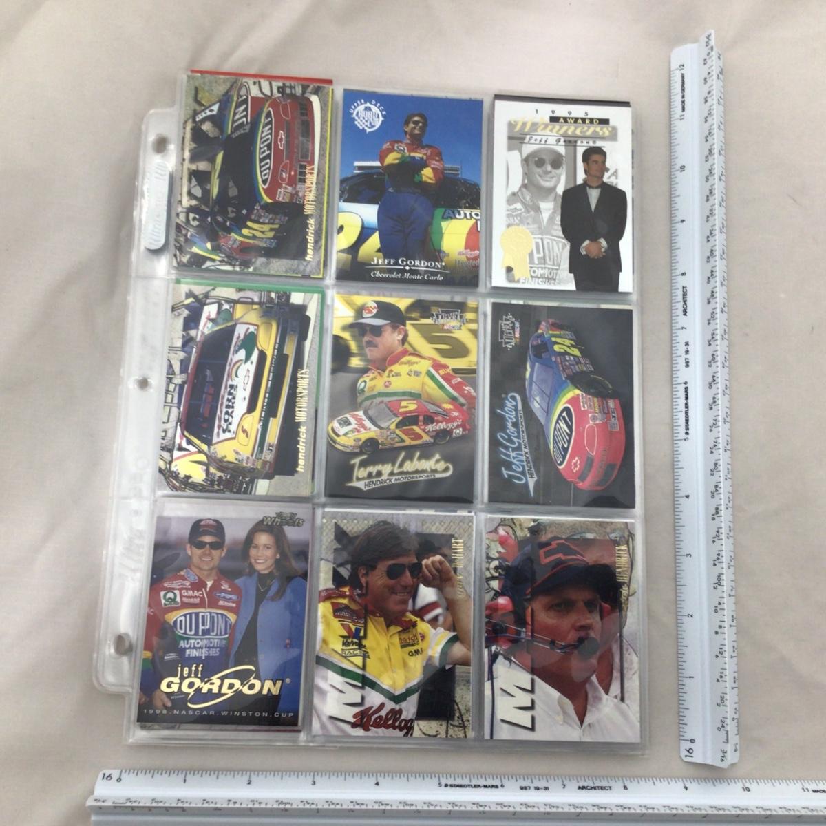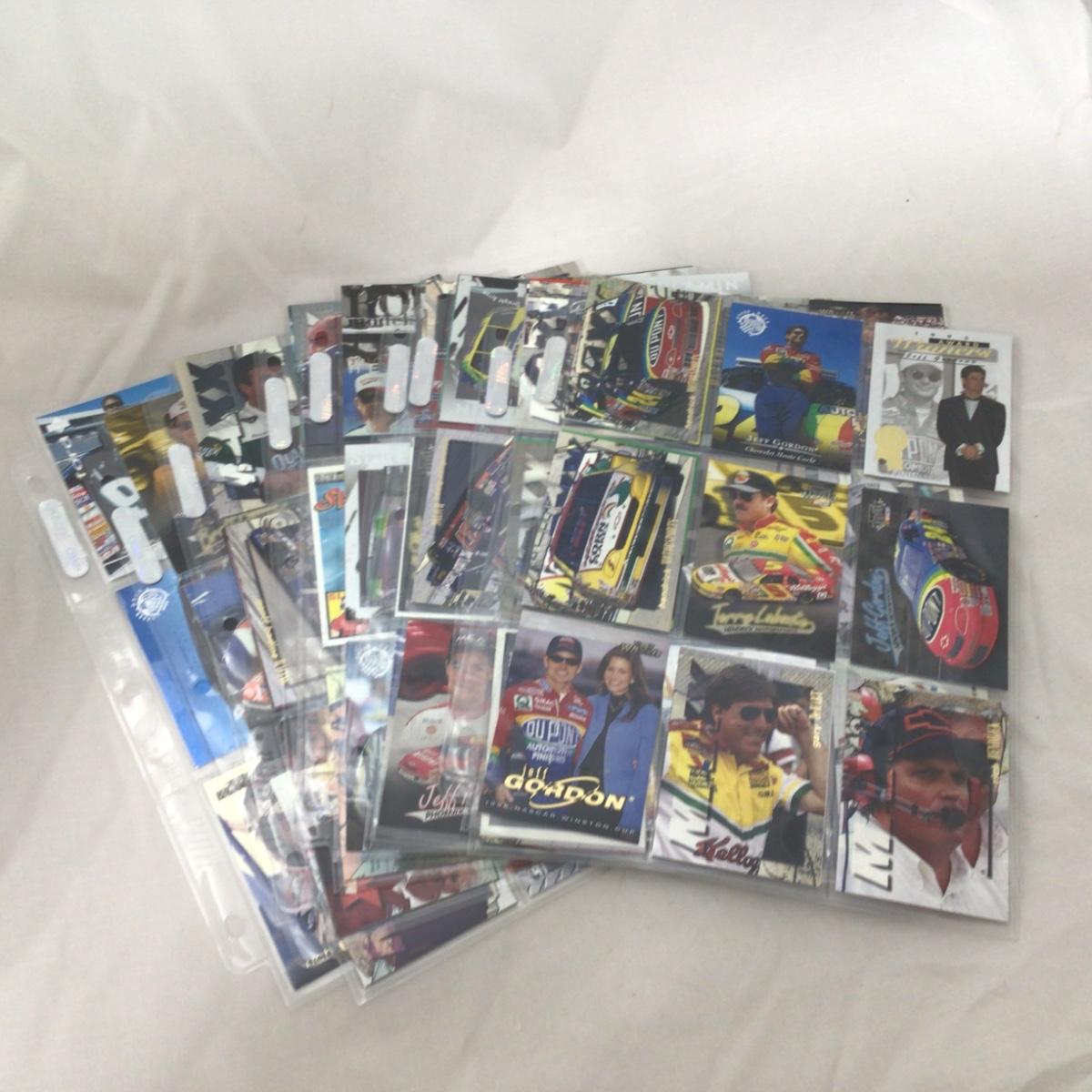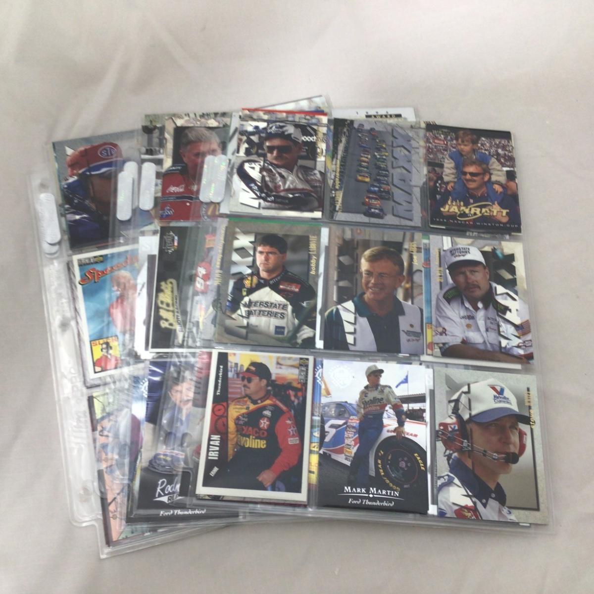 Nine pages of NASCAR collector cards. Please see photos for details and condition. ::: Shipping is available on this lot. If you require shipping you must let us know at the close of the auction. We will coordinate with you after the item has been won. Shipping fees will include insurance up to or exceeding the value of all items being mailed. If you have any questions regarding this lot please contact the auctioneer either via this website, by direct email or by phone. PICK UP TIMES and other important information can be found in the TERMS and DESCRIPTION of the auction. Please take a look for pertinent information. Thanks!