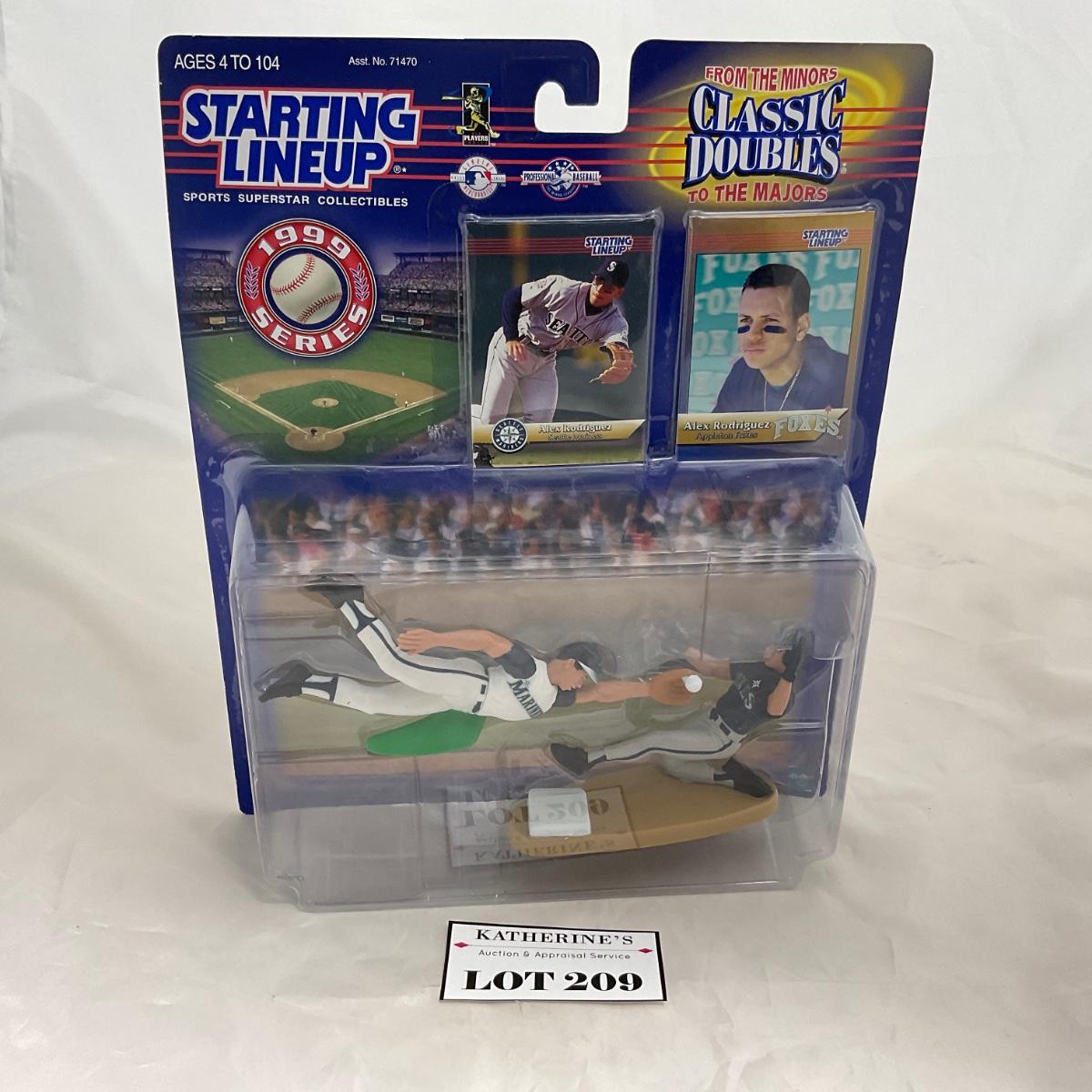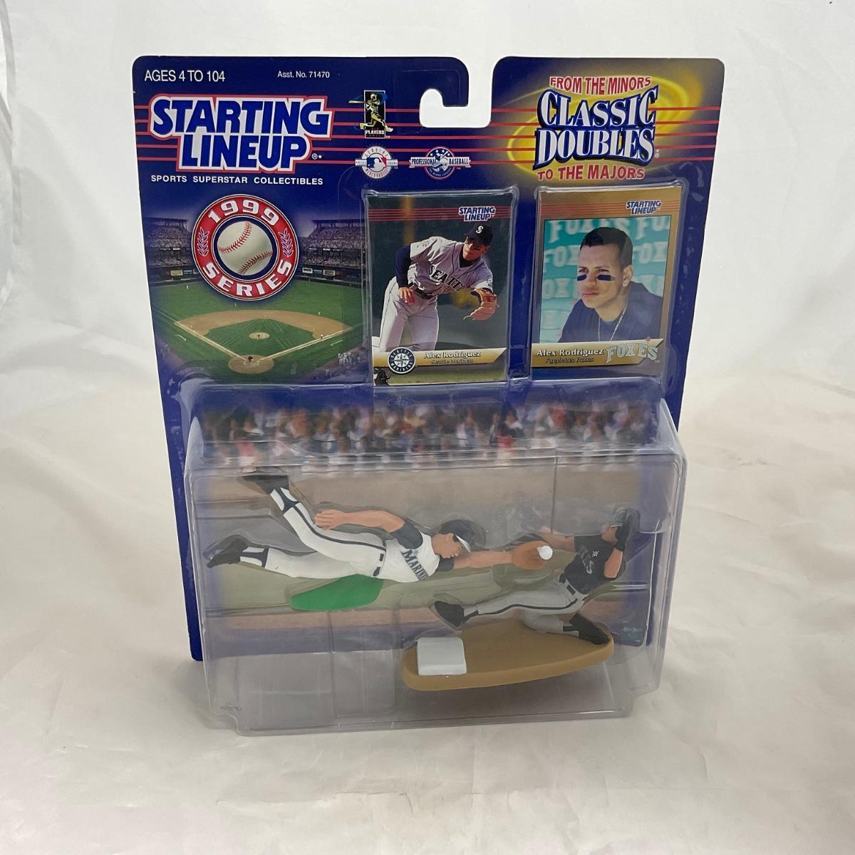 One 1999 Starting Lineup Classic Doubles | Alex Rodrigues. Please see photos for details and condition. ::: Shipping is available on this lot. If you require shipping you must let us know at the close of the auction. We will coordinate with you after the item has been won. Shipping fees will include insurance up to or exceeding the value of all items being mailed. If you have any questions regarding this lot please contact the auctioneer either via this website, by direct email or by phone. PICK UP TIMES and other important information can be found in the TERMS and DESCRIPTION of the auction. Please take a look for pertinent information. Thanks!