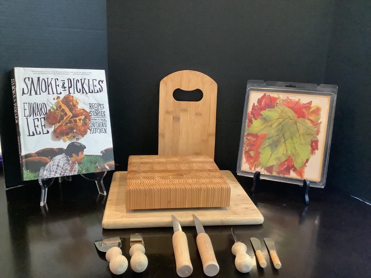 Smoke and Pickles Cookbook, cutting boards are 13.5" x 11.5" , 8.75" square, 12" x 6.5"