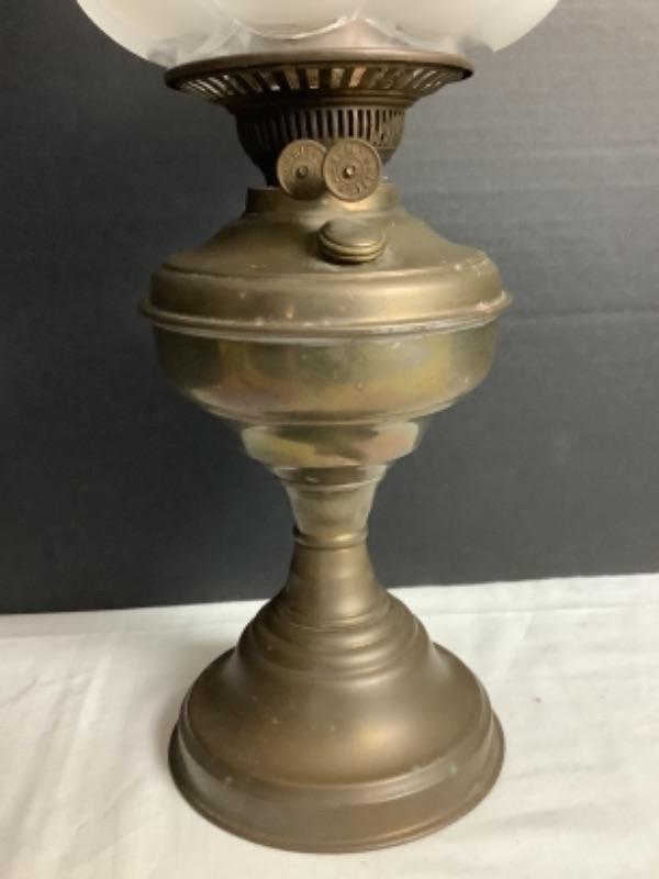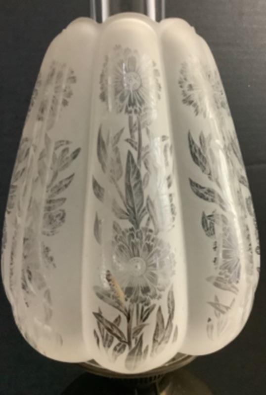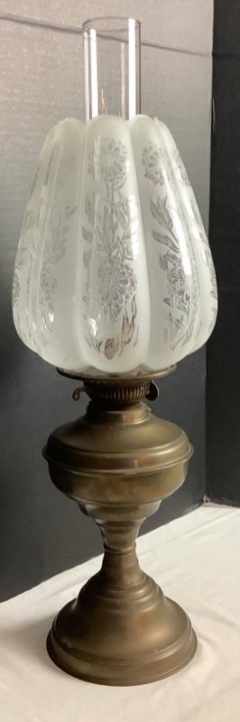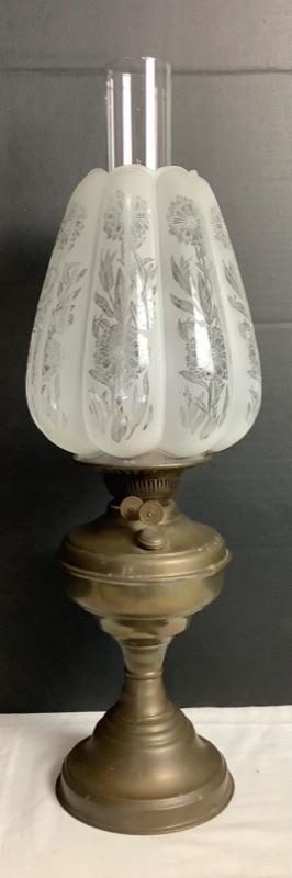 2092 British Made Brass Oil Lamp with Etched Glass Gourd Shaped Shade