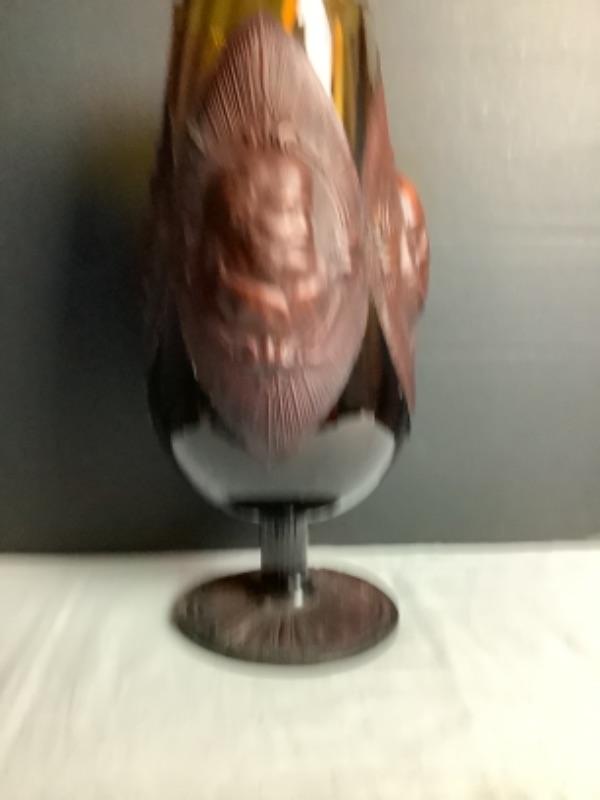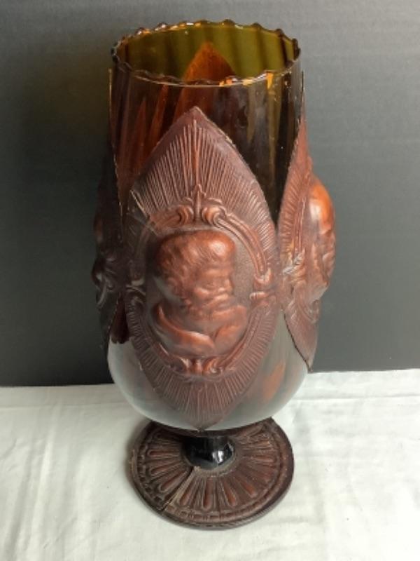 2093 Jeype Yellow Amber Glass Leather Covered Pedestal Vase