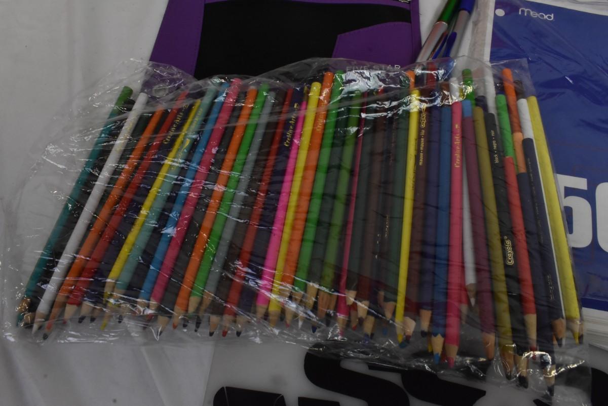 20+assorted school/office supplies, notebook paper, colored pencils, Mead pouch,