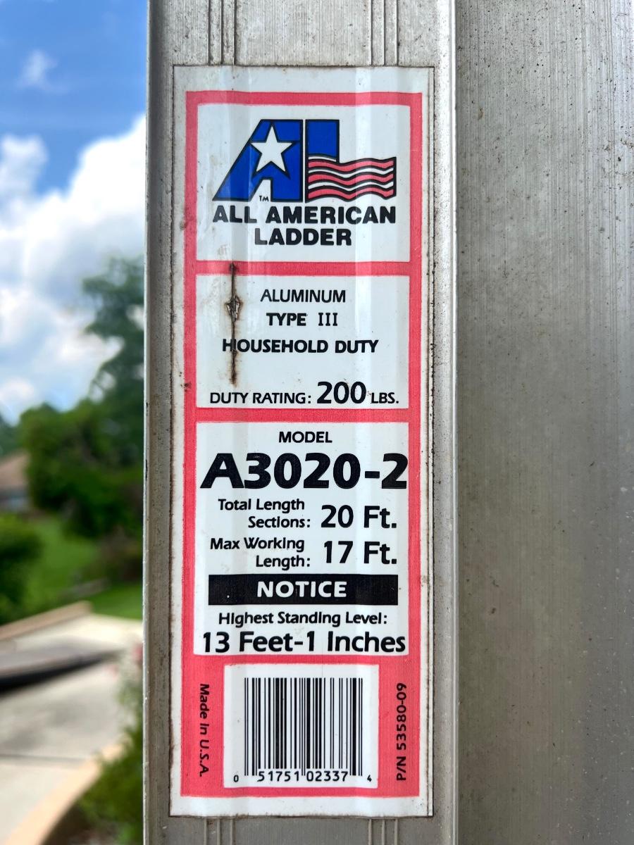All American Ladder model A3020-2. Great condition. Everything works as it should.