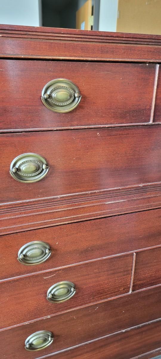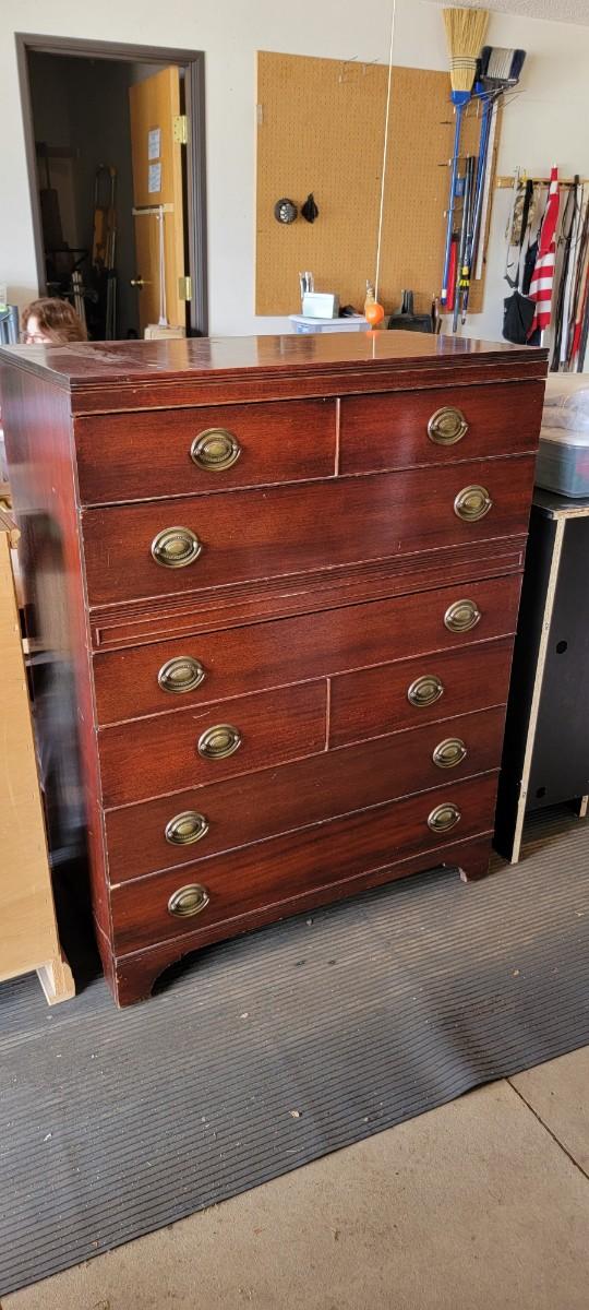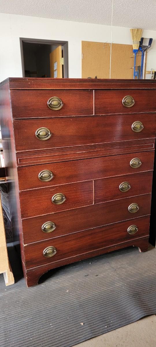Vintage Mengel chest of drawers - 7 drawers. Appears to be original hardware. Measures 19" x 34.5" x 45.5".