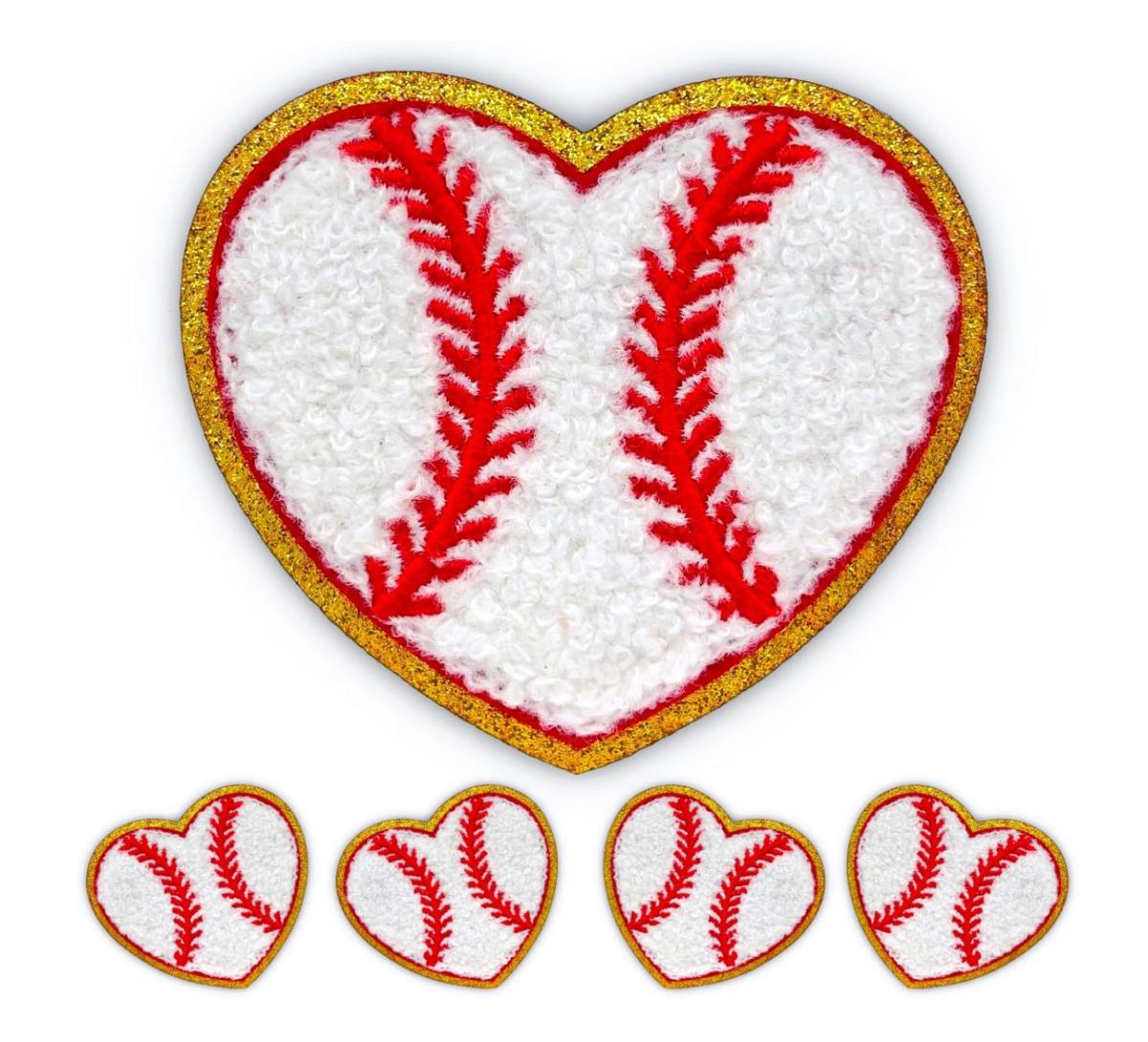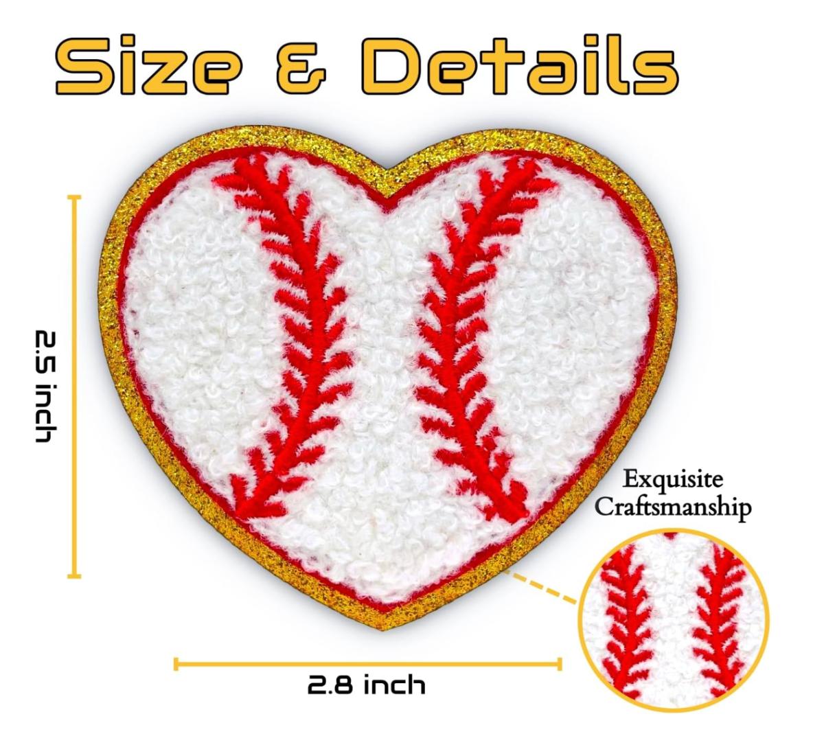 20-Pack Baseball Heart Iron On Chenille Patches Glitter Bulk Sew On Patches Fuzzy Applique, Iron On Patches for Clothes, Jackets, Jeans, Backpacks & Hats