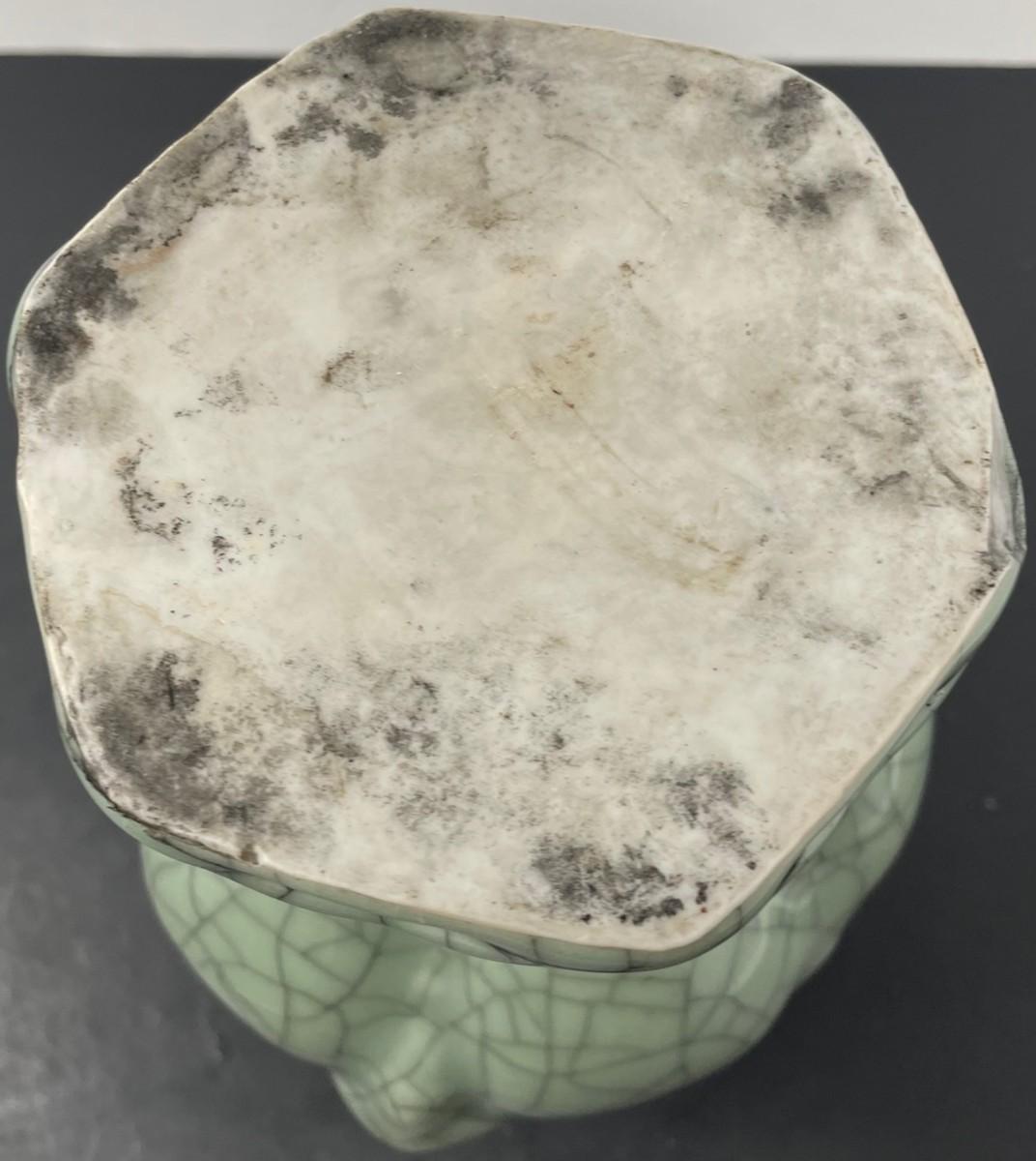Description: 20th C. Chinese Celadon Crackle Porcelain Vase; Measurement approximate: 8"h; Material: Porcelain