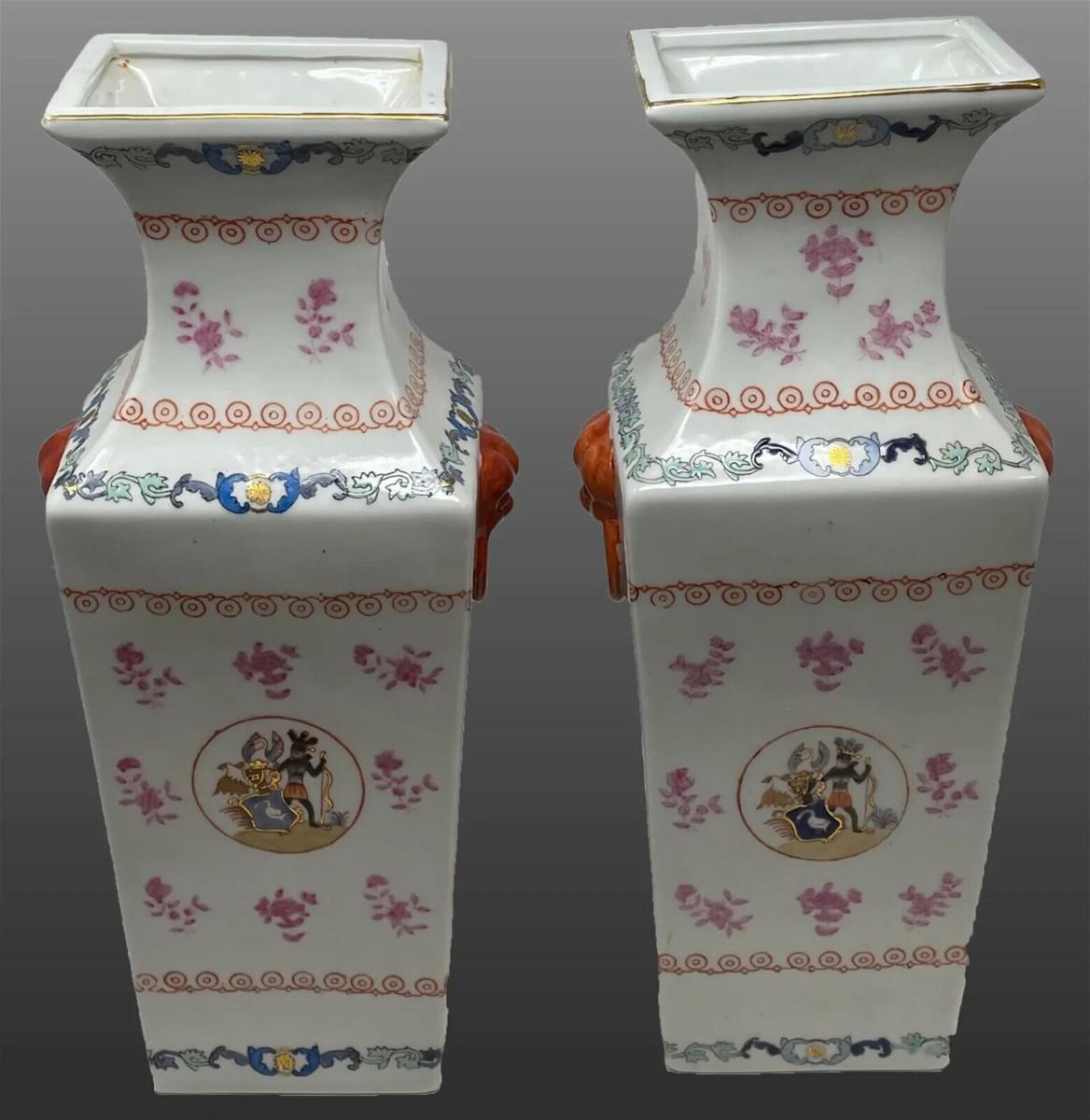 Description: 20th Century Chinese Twin vases (Republic Era); Measurement approximate: 14.5 h (Inches; Material: Porcelain; Condition: Good