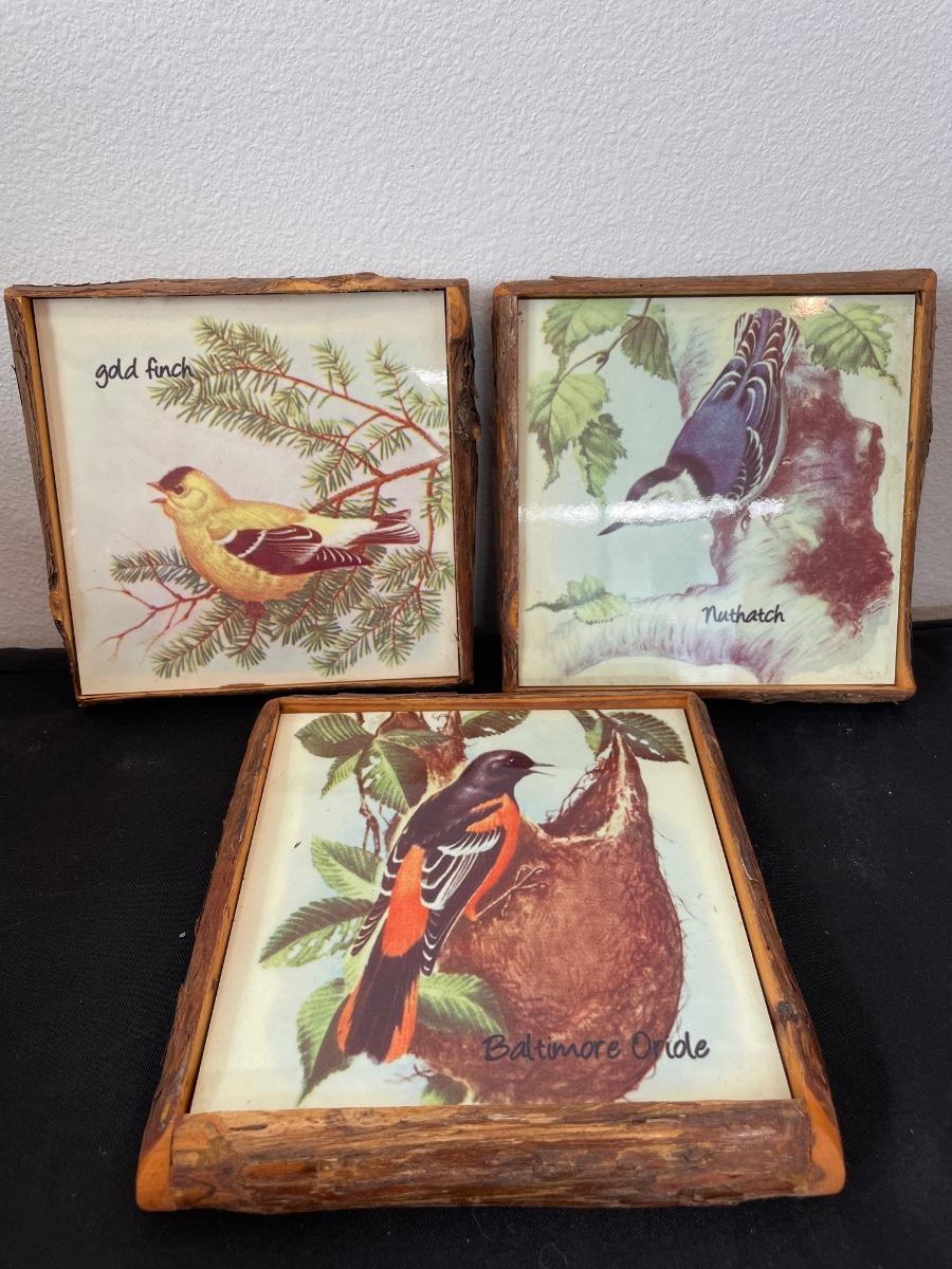 21- 3 framed bird tiles