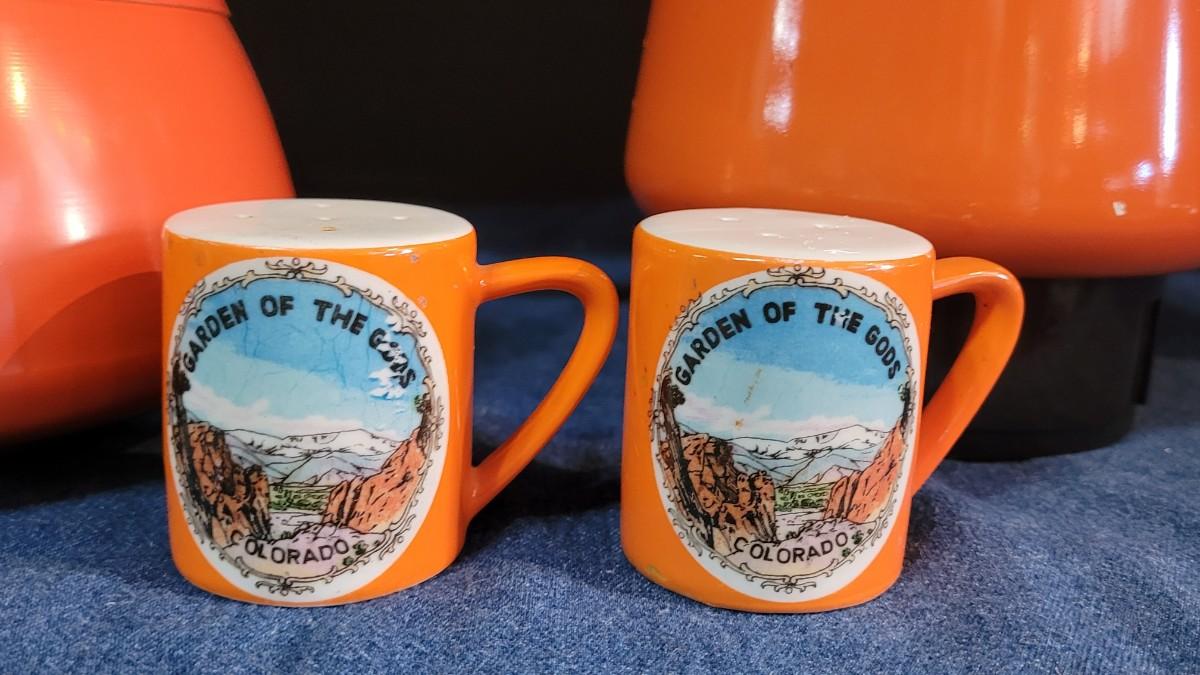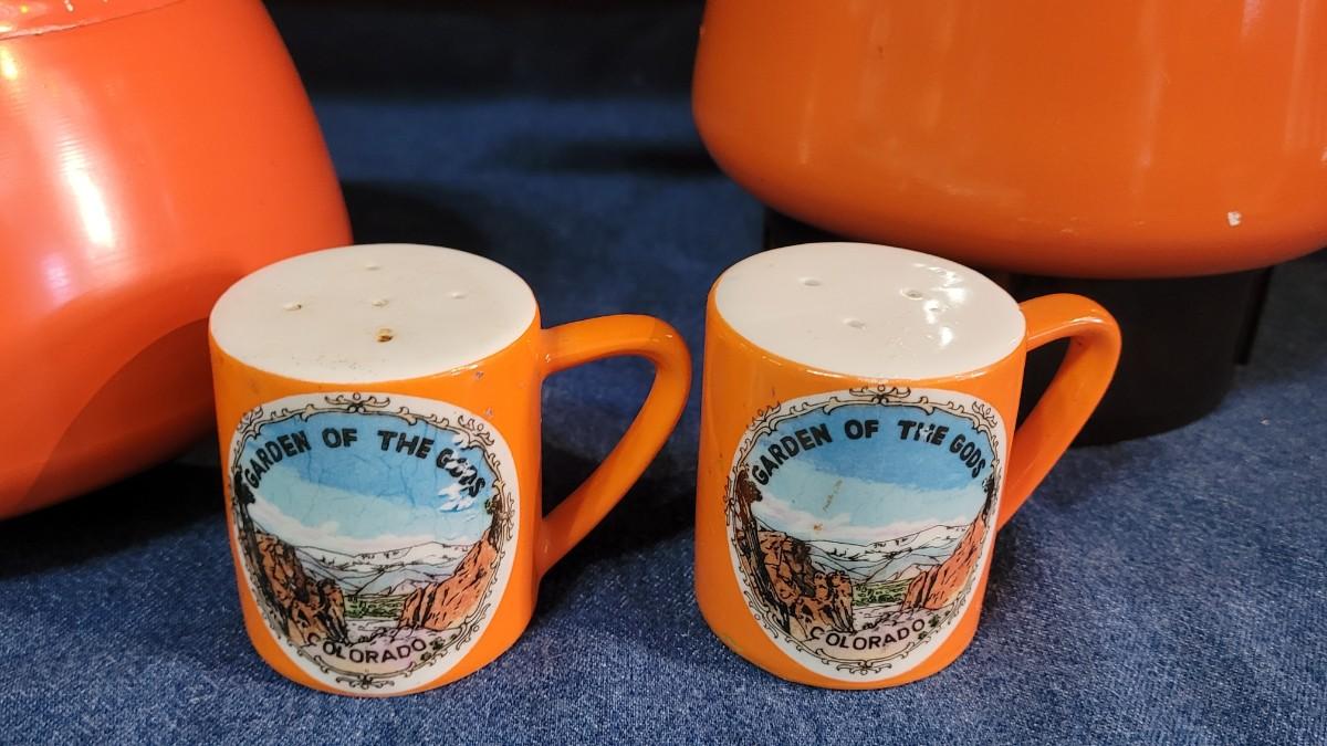 21: (2) Orange Fondue Pots & Garden of the God's S&P