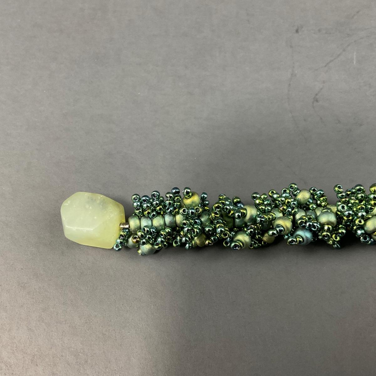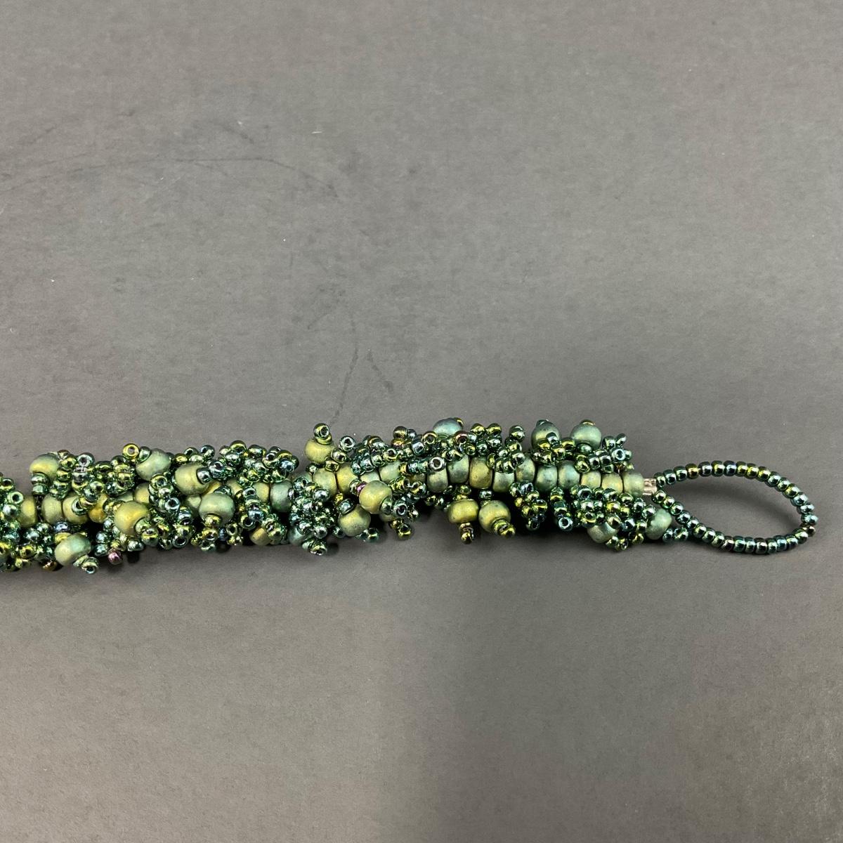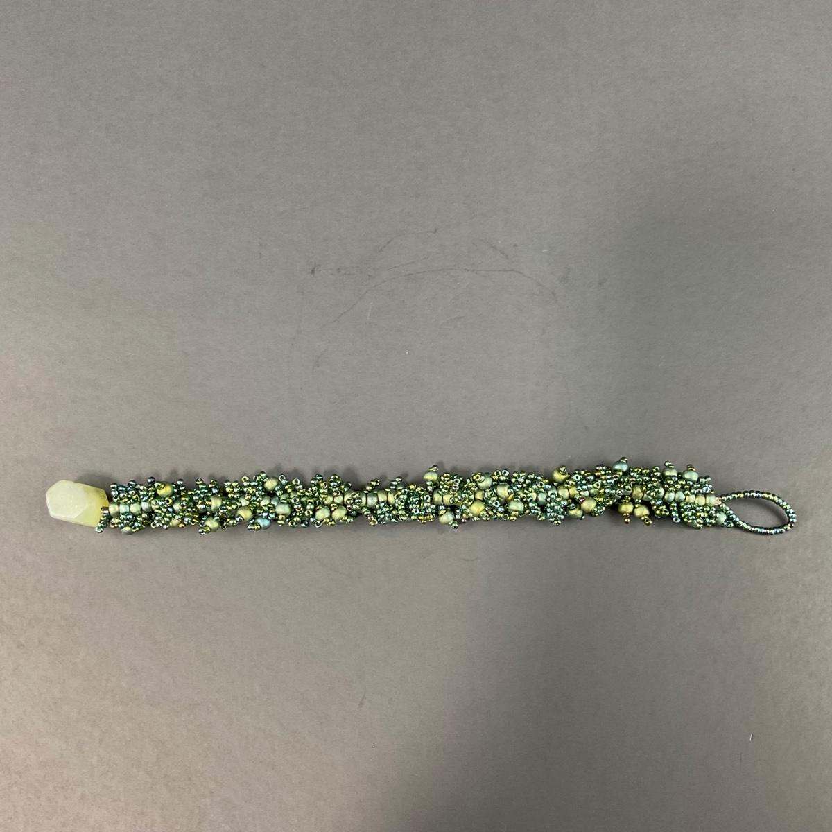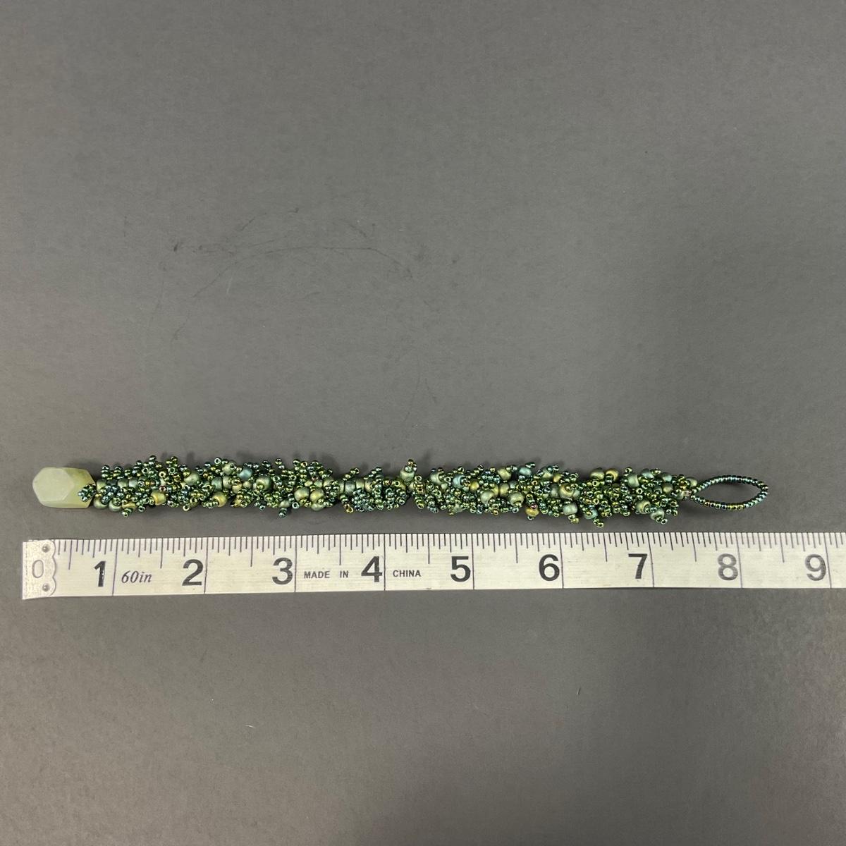One handmade artisan green beaded bracelet. This piece has no damage, and appears to be in great shape with no visable chips, cracks, or broken pieces. Please see photos for details and condition. Any condition statement is given as a courtesy to a client, is an opinion, and should not be treated as a statement of fact. Reference to condition written, oral or within a condition report shall not be regarded as a full account of condition and may not include all defects, alterations, or restorations. Absence of a condition report does not imply a lot is flawless or lacking imperfections or damage. Katherine’s Auction & Appraisal Service shall have no responsibility for any error or omission. Returns shall not be accepted on the basis of condition. ::: Shipping is available on this lot. If you require shipping you must let us know at the close of the auction. We will coordinate with you after the item has been won. Shipping fees will include insurance up to or exceeding the value of all items being mailed. If you have any questions regarding this lot please contact the auctioneer either via this website, by direct email or by phone. PICK UP TIMES and other important information can be found in the TERMS and DESCRIPTION of the auction. Please take a look for pertinent information. Thanks!