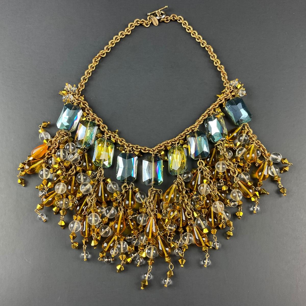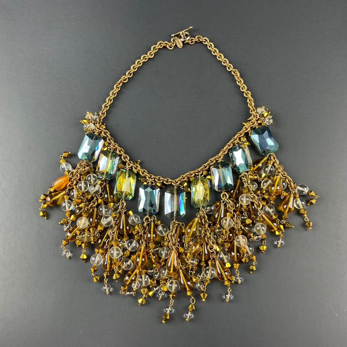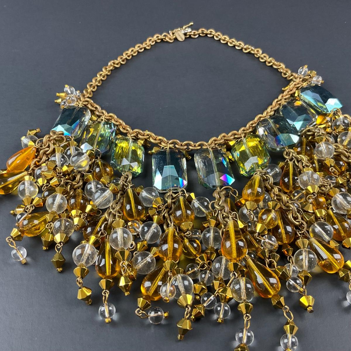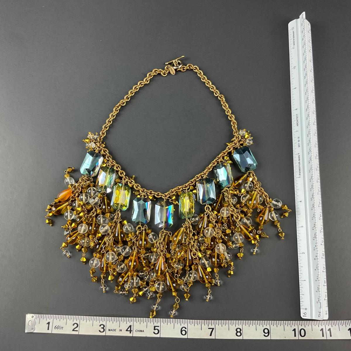 -21- DARIENS | Beaded Gold Tone Multicolor Statement Necklace | Marked