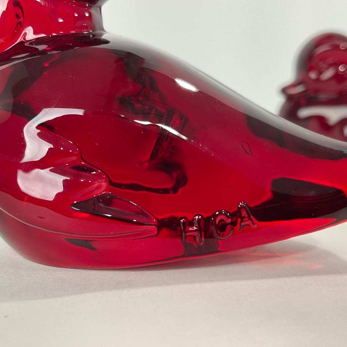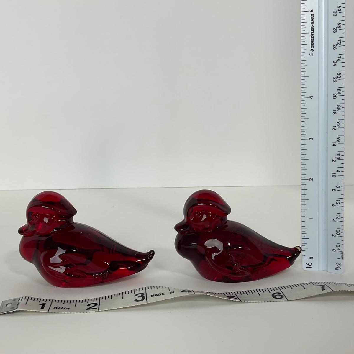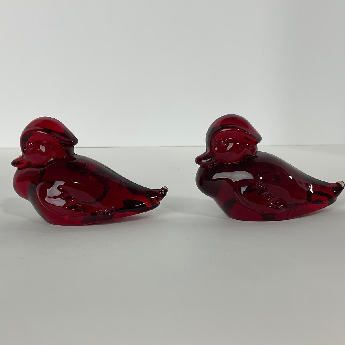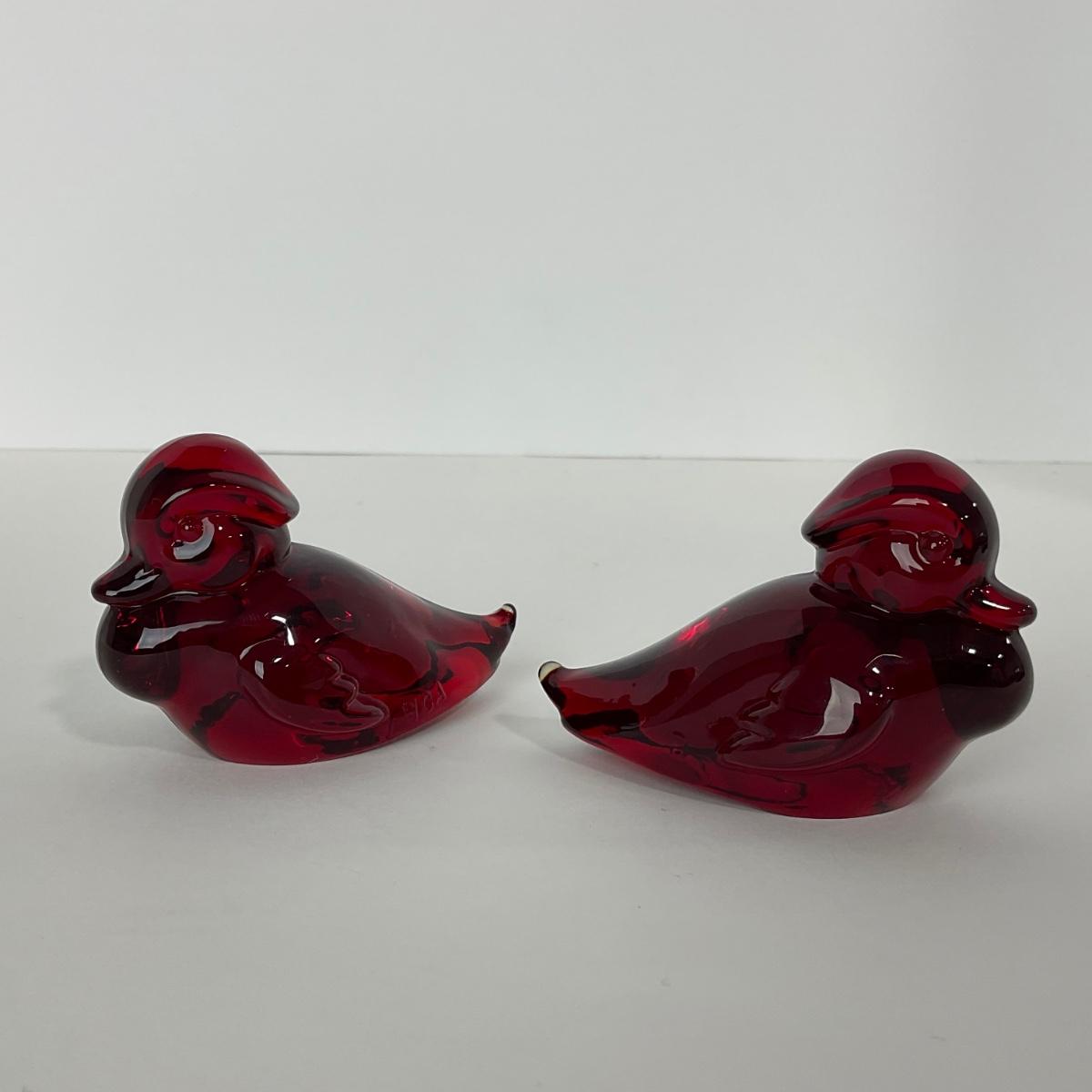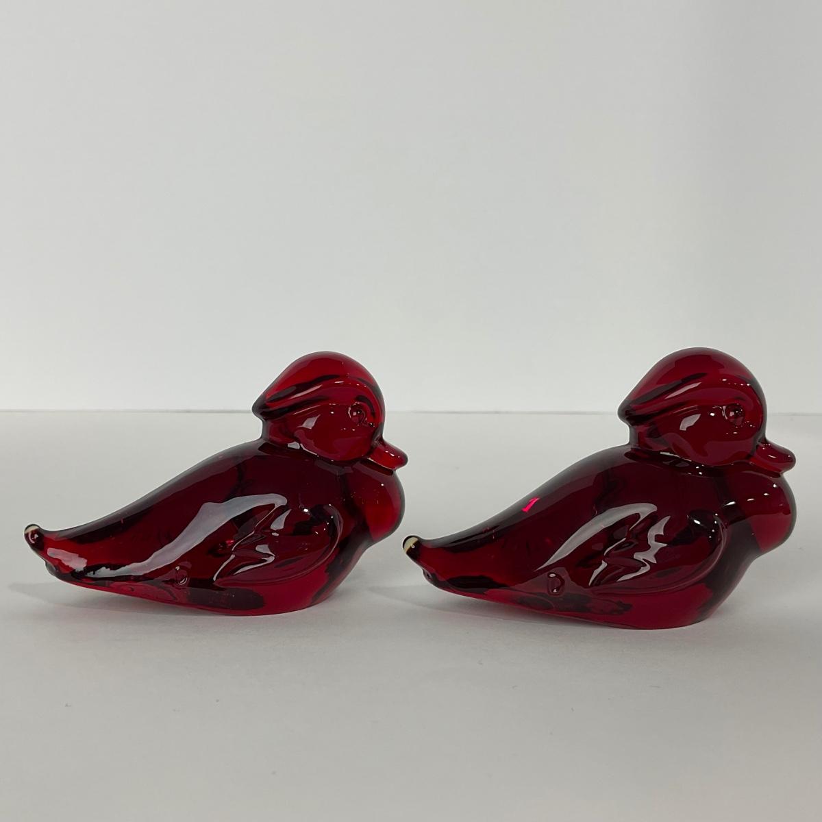 -21- HEISEY | By Dalzell Imperial Ruby Red Marked Sitting Wood Ducklings