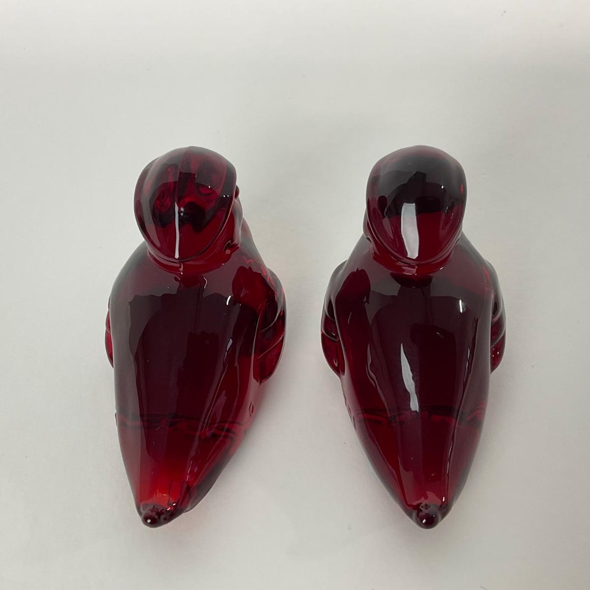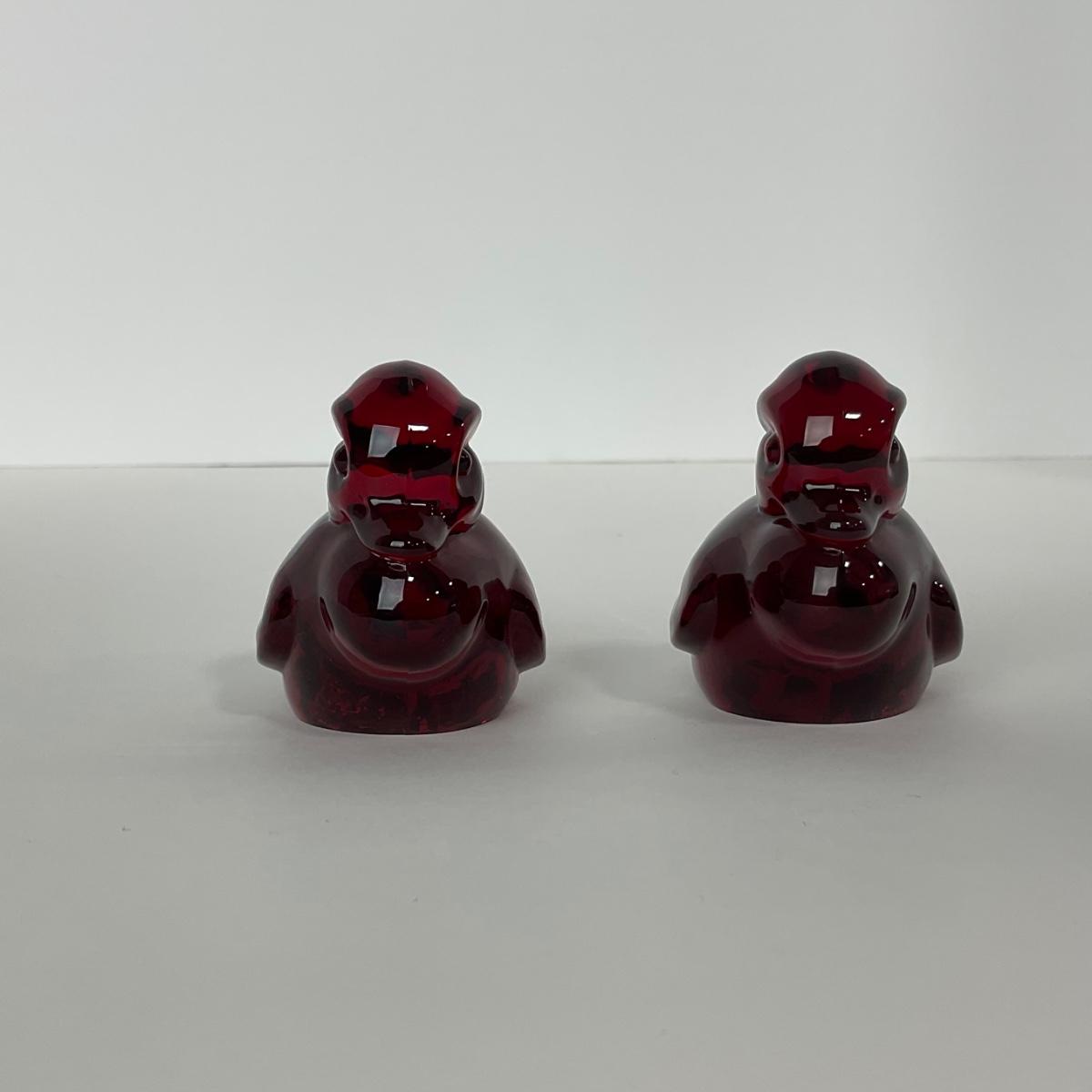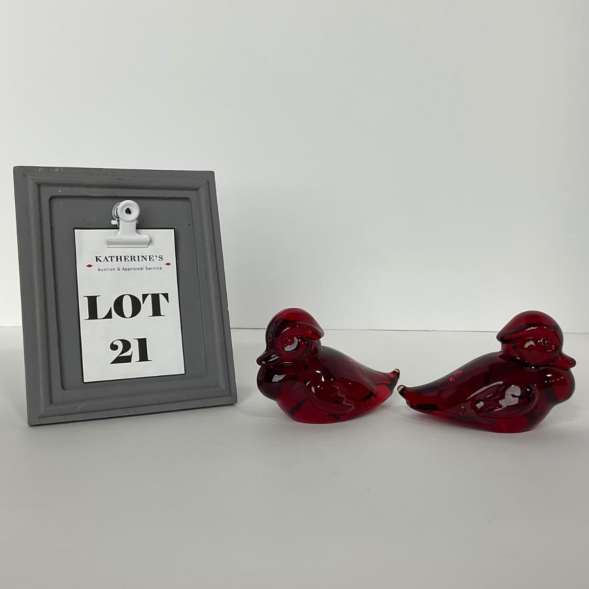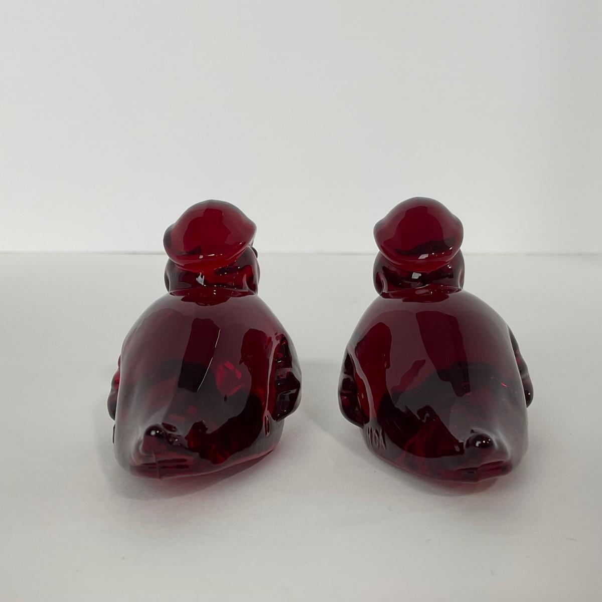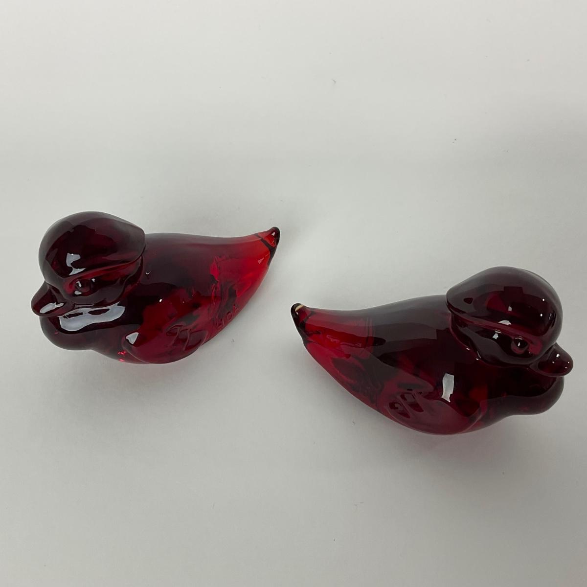 -21- HEISEY | By Dalzell Imperial Ruby Red Marked Sitting Wood Ducklings