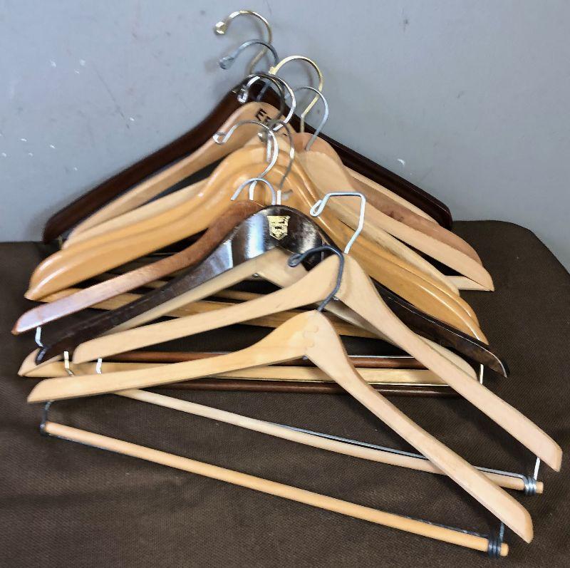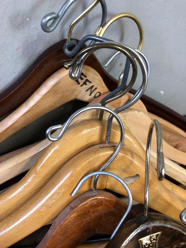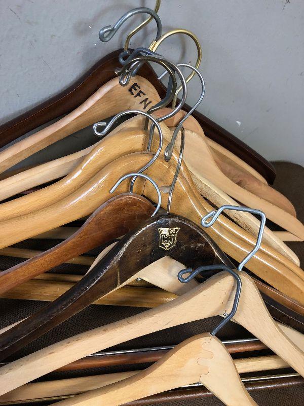 One Dozen. Some are cedar, used. Usable - some pant suit hangers