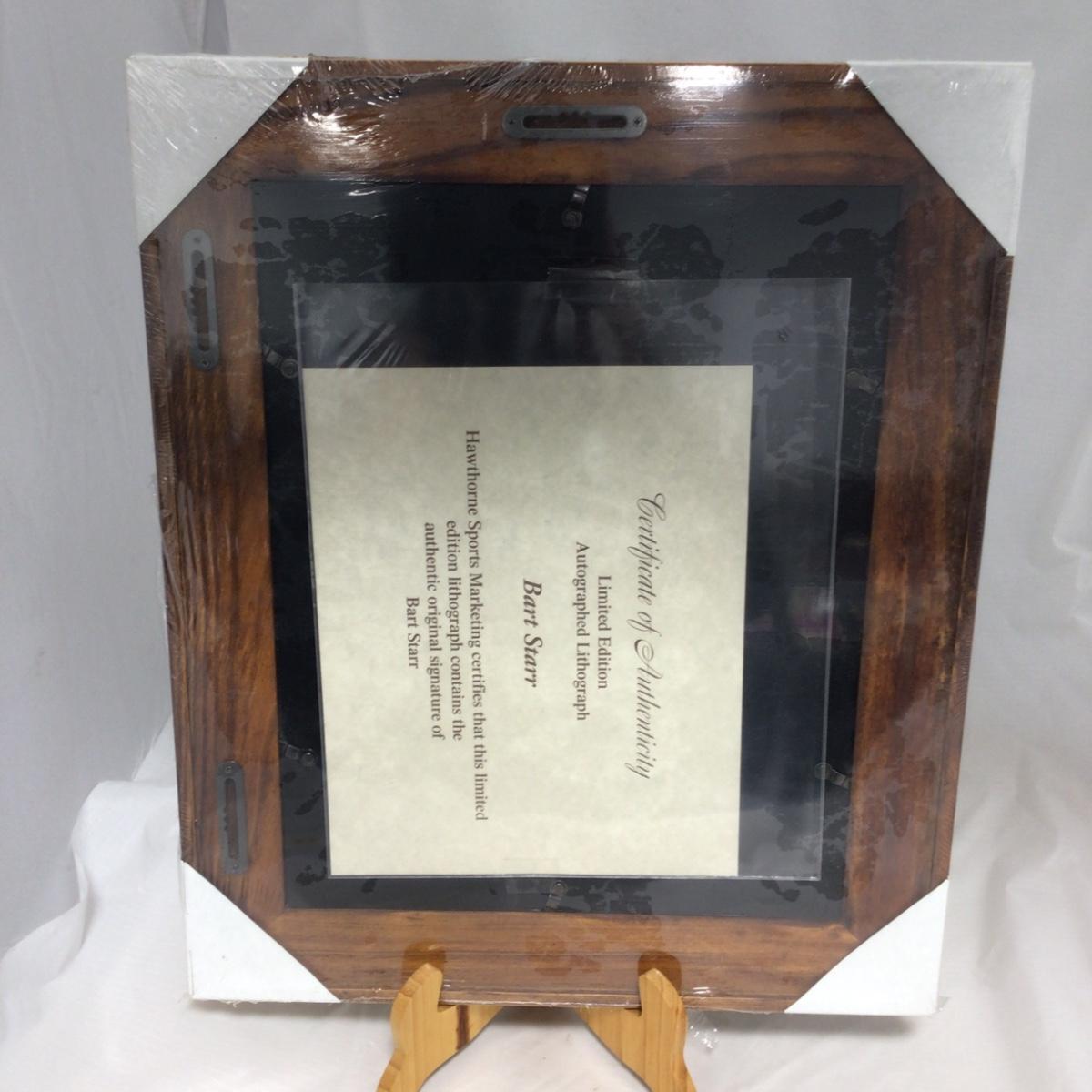 Framed and signed Bart Starr Lithograph With Certificate of Authenticity. 15 inches by 18 inches. In exceptional condition. Please see photos for details and condition. ::: Shipping is available on this lot. If you require shipping you must let us know at the close of the auction. We will coordinate with you after the item has been won. Shipping fees will include insurance up to or exceeding the value of all items being mailed. If you have any questions regarding this lot please contact the auctioneer either via this website, by direct email or by phone. PICK UP TIMES and other important information can be found in the TERMS and DESCRIPTION of the auction. Please take a look for pertinent information. Thanks!