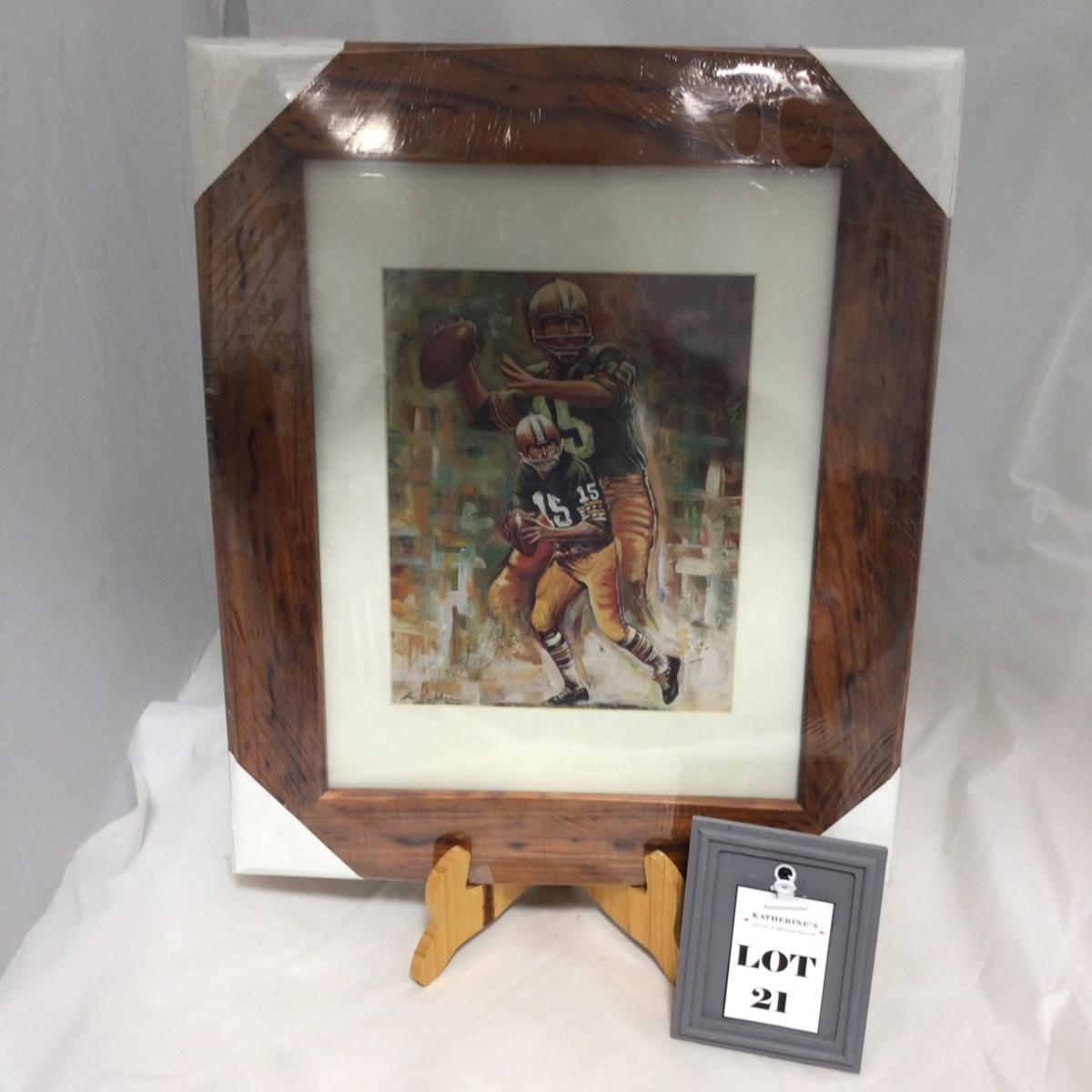 (21) PACKERS| Signed Bart Starr framed Lithograph