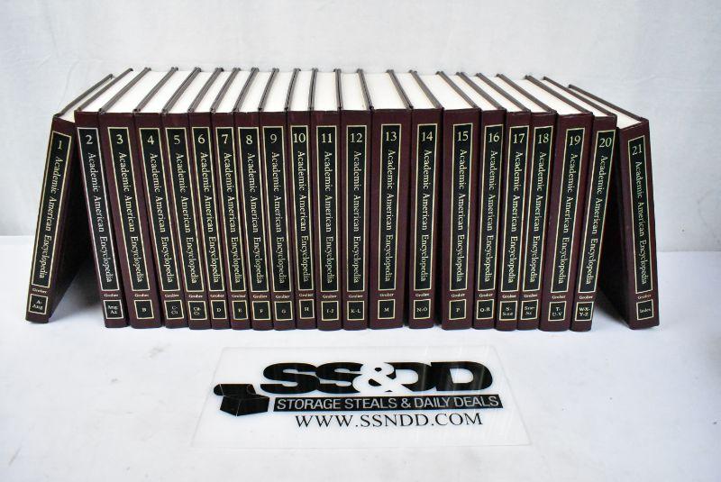21 pc Maroon Hardcover Books: Academic American Encyclopedia, Volumes 1-21, Vintage 1983