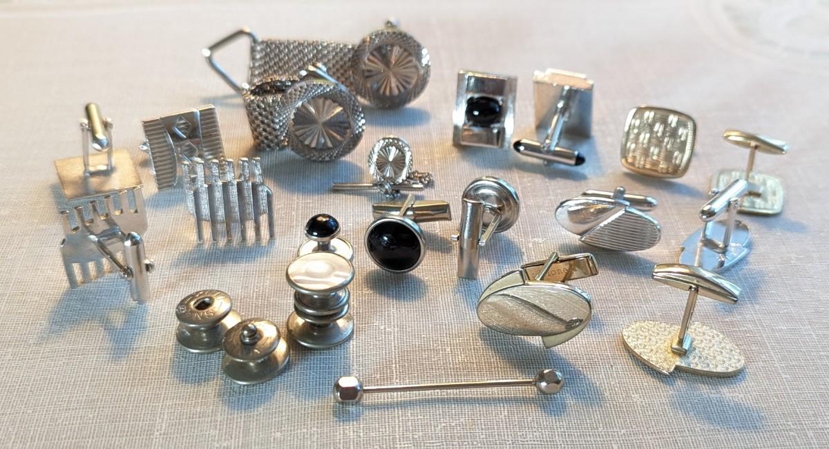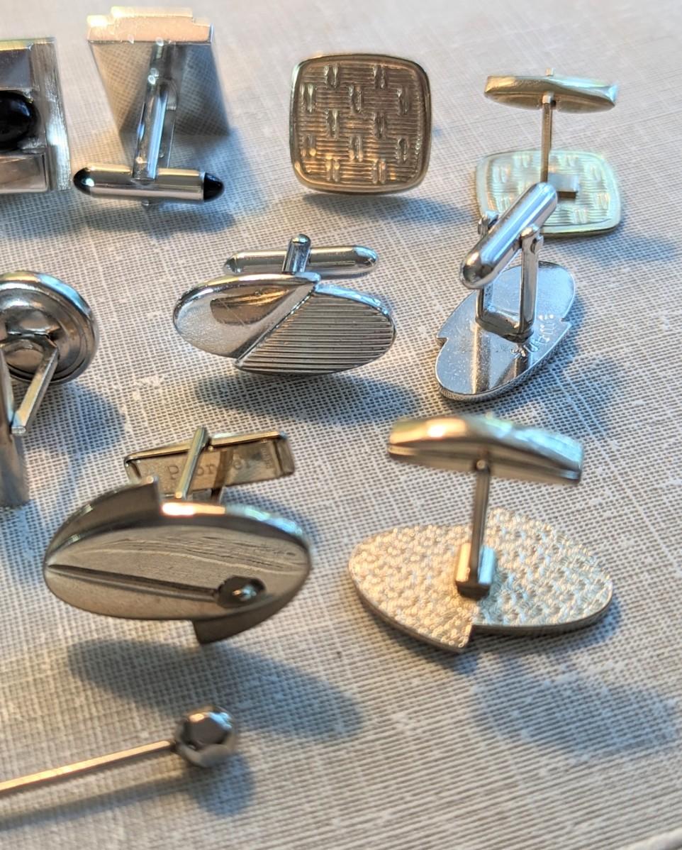 21 pc mens vintage jewelry cufflinks, Swank, tie pins and a collar pin