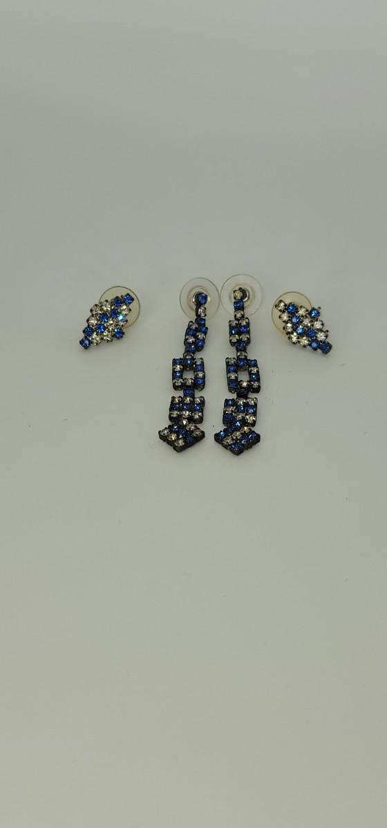 2 pr blue+clear rhinestones