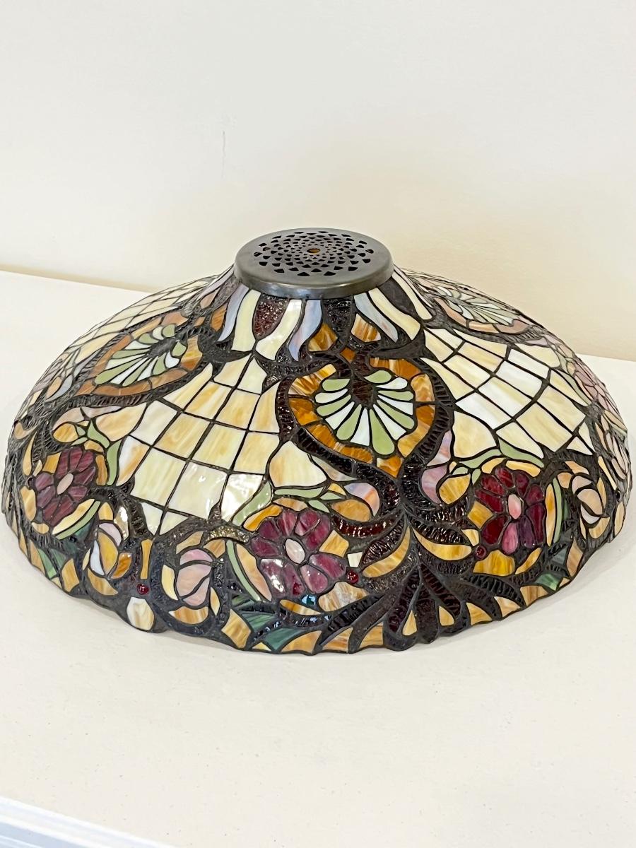 21” Round Tiffany Style Floral Lampshade ~ Stained Glass Shade