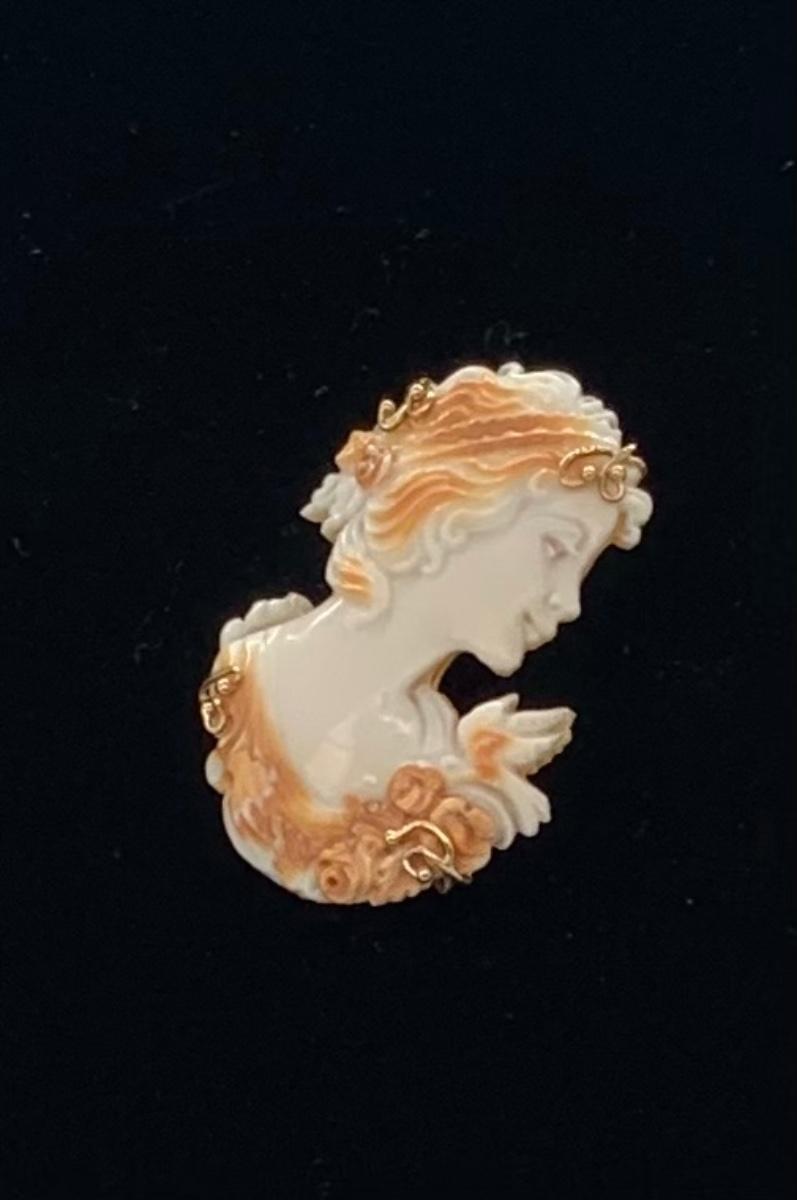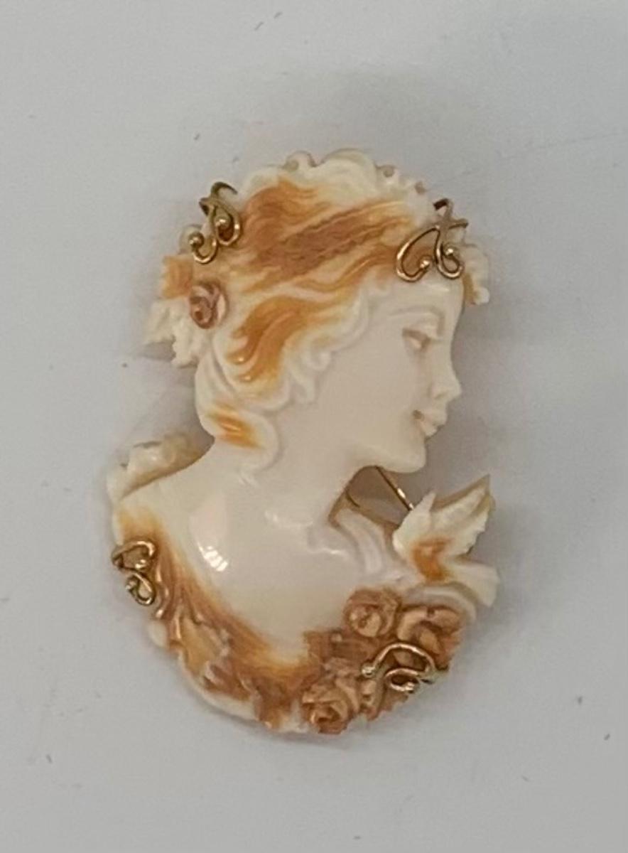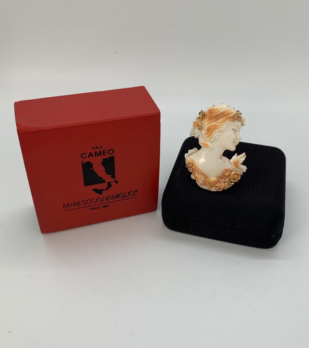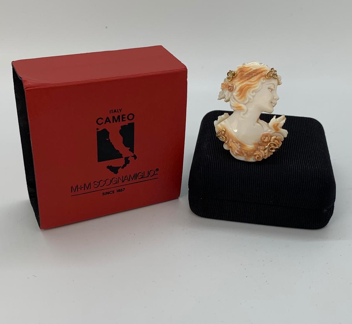 21; New with box Sardonyx Shell Cameo 14K M&M Scognamiglio Cameo Pendant/Brooch