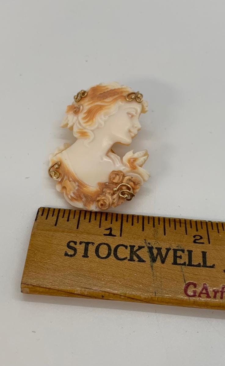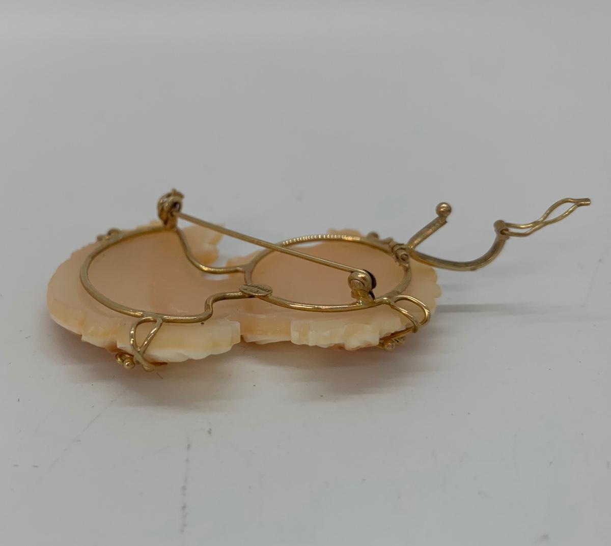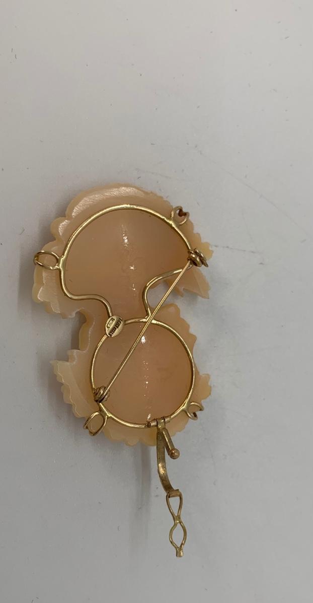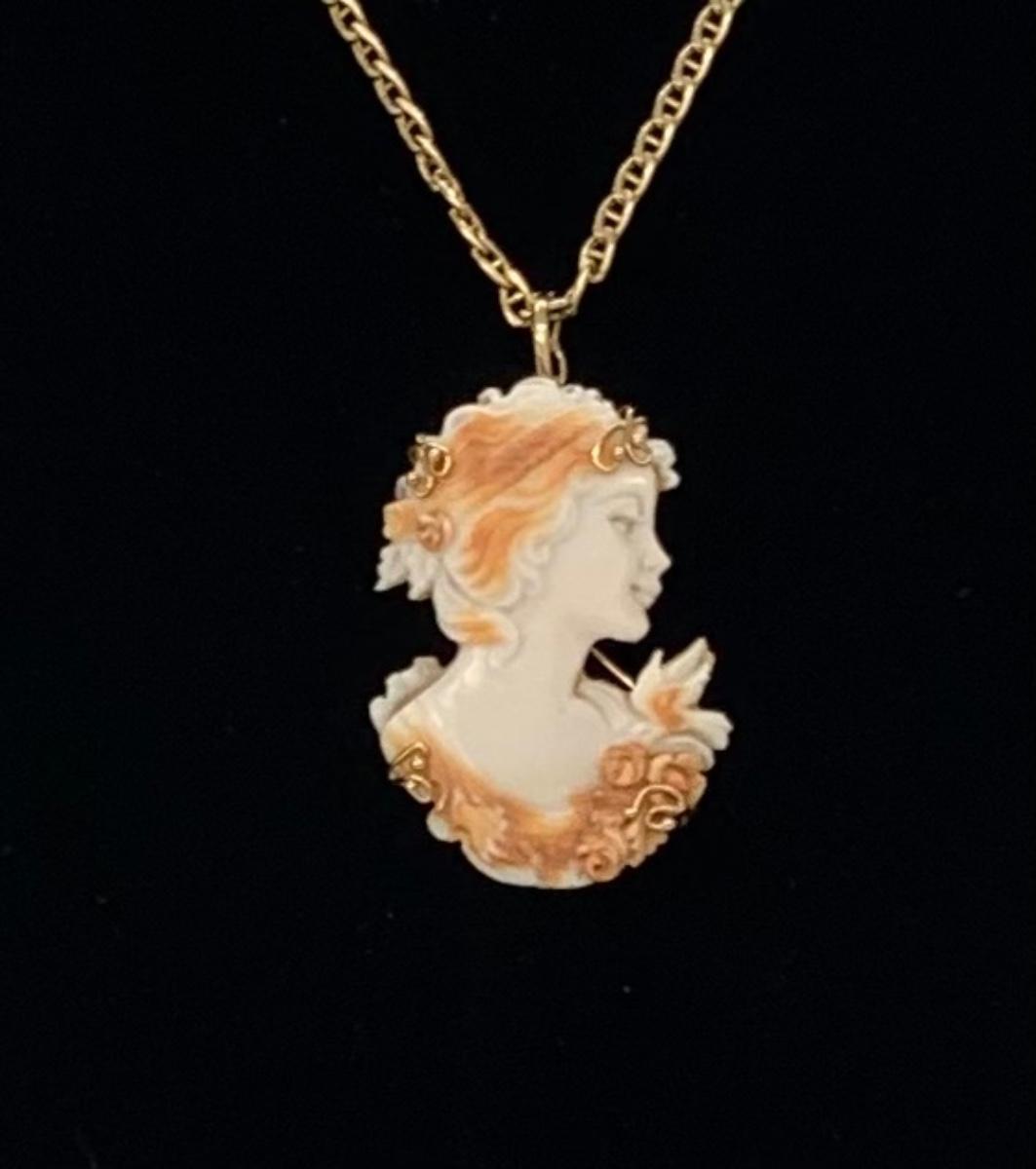 21; New with box Sardonyx Shell Cameo 14K M&M Scognamiglio Cameo Pendant/Brooch