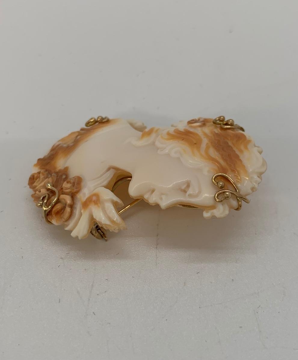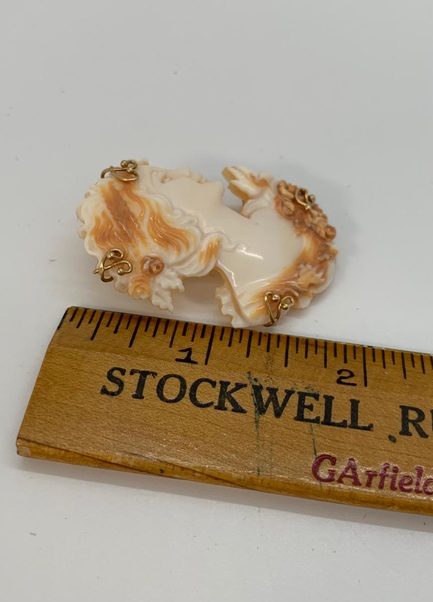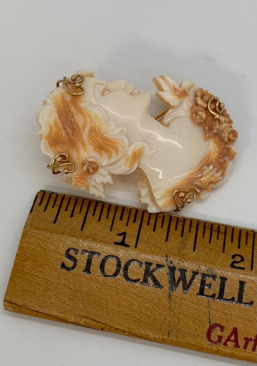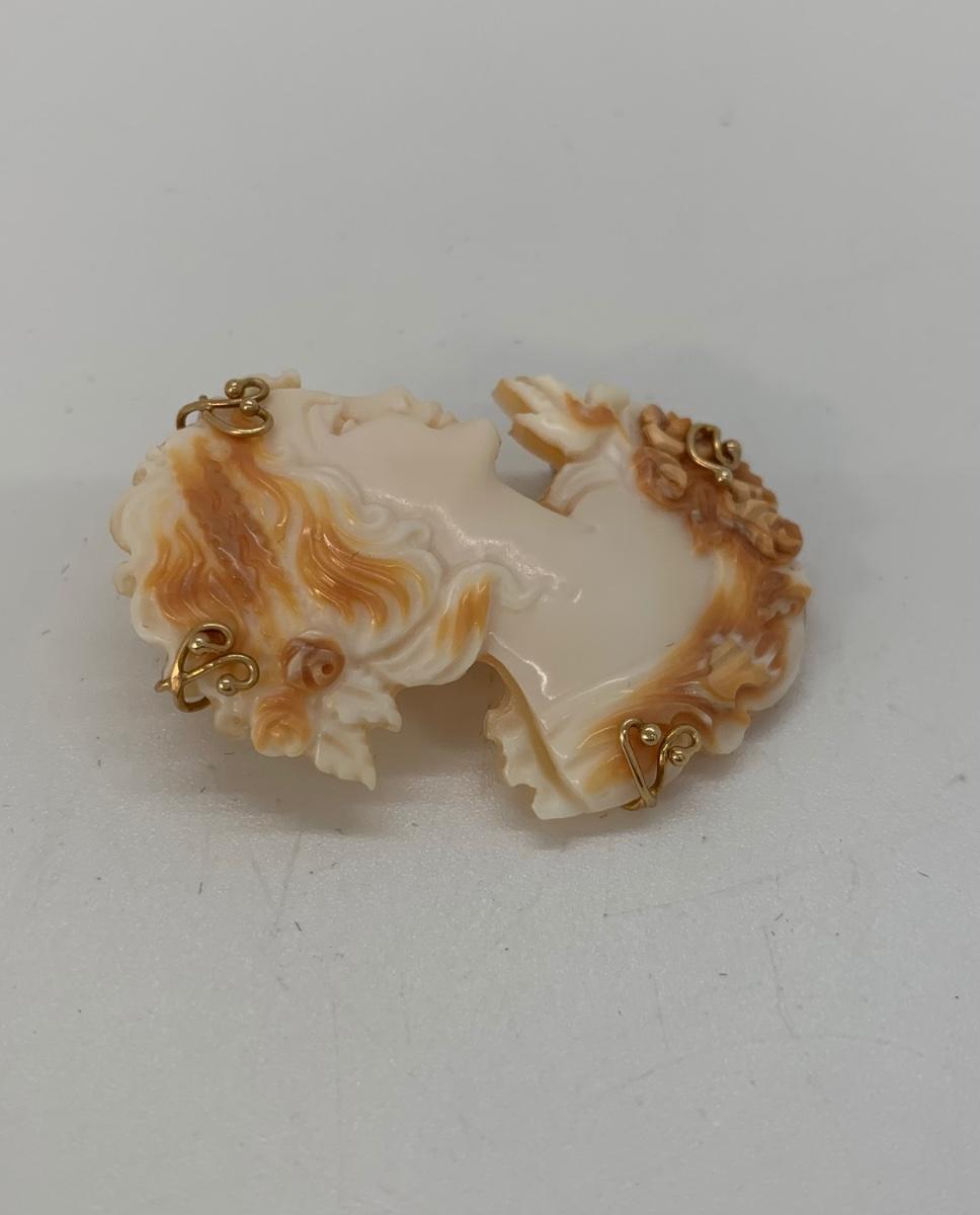 21; New with box Sardonyx Shell Cameo 14K M&M Scognamiglio Cameo Pendant/Brooch