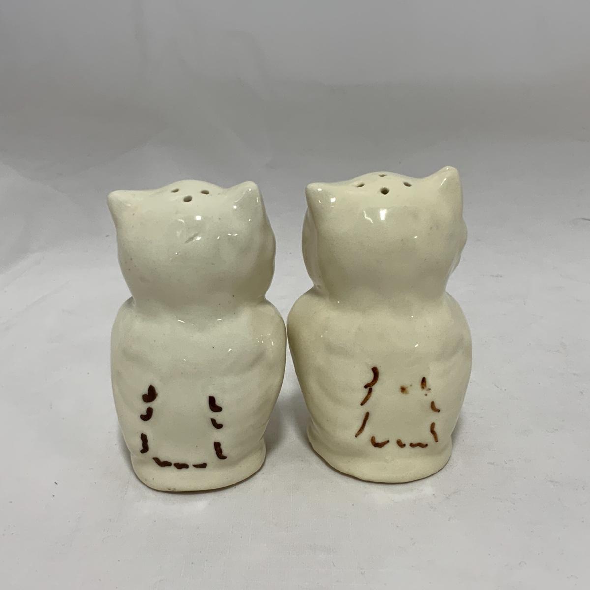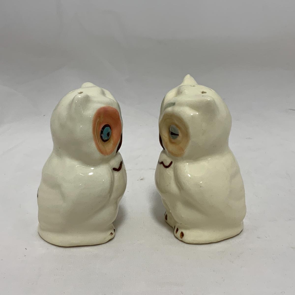 From the Estate of Peter and Alice Radovanovich: Adorable set of Winking Owl Salt and Pepper Shakers produced by Shawnee in the 1940s. This salt and pepper set matches the cookie jar in the previous lot very nicely! Please see photos for details and condition. ::: Shipping is available on this lot. If you require shipping you must let us know at the close of the auction. We will coordinate with you after the item has been won. Shipping fees will include insurance up to or exceeding the value of all items being mailed. If you have any questions regarding this lot please contact the auctioneer either via this website, by direct email or by phone. PICK UP TIMES and other important information can be found in the TERMS and DESCRIPTION of the auction. Please take a look for pertinent information. Thanks!