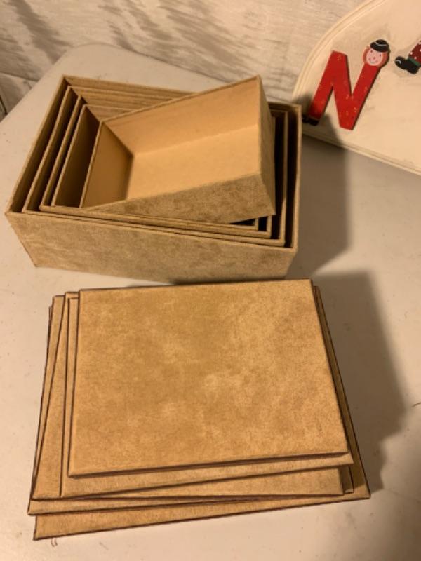 Suede Nesting Boxes, Wooden Name Plaque, New Nomad Rain-boots Size 9. Was $35