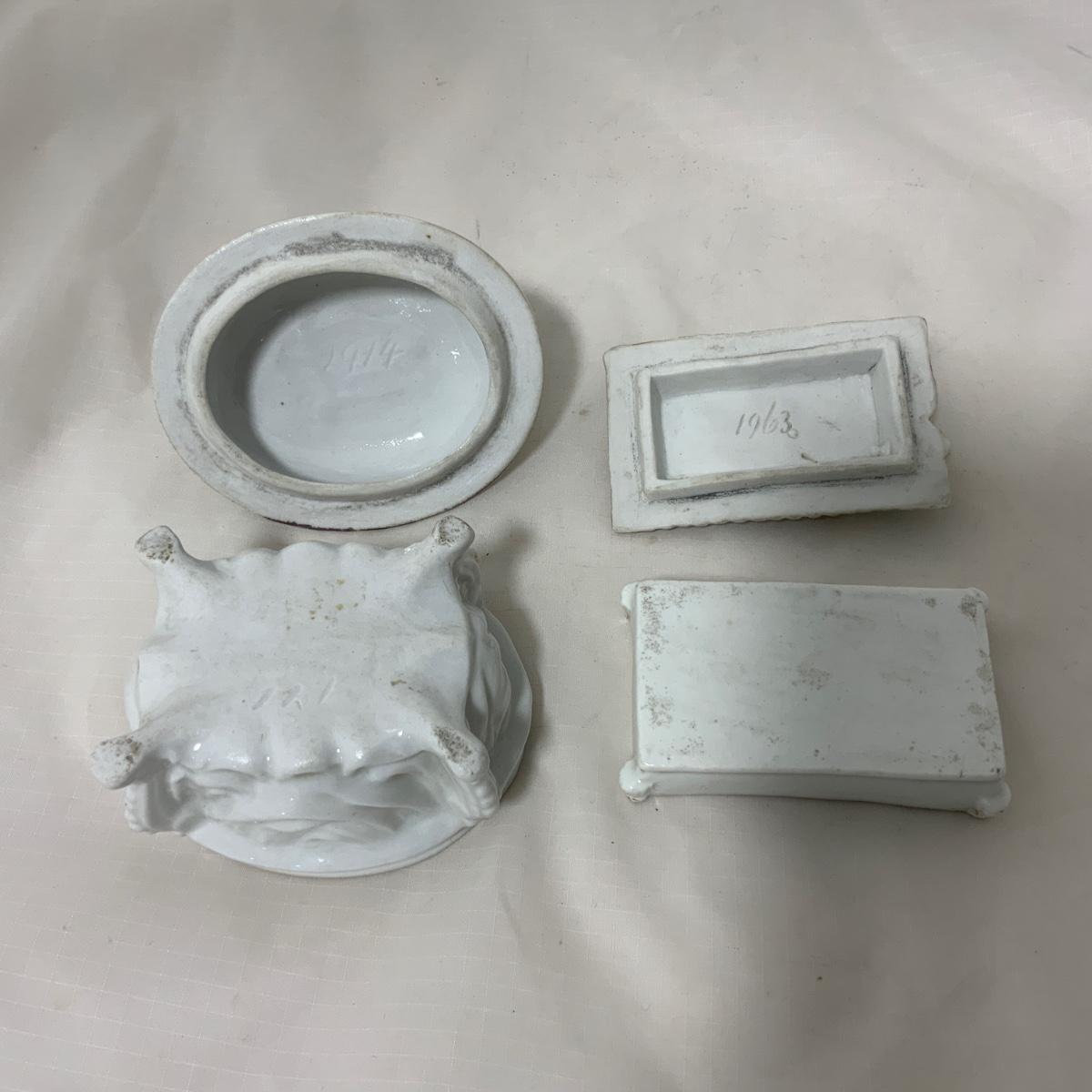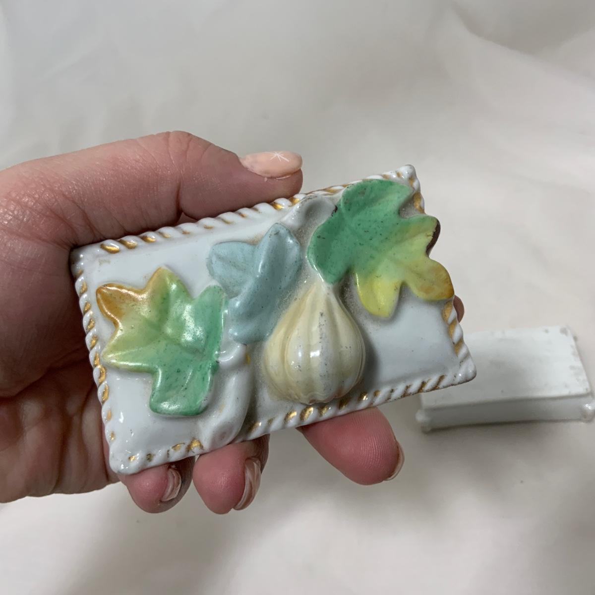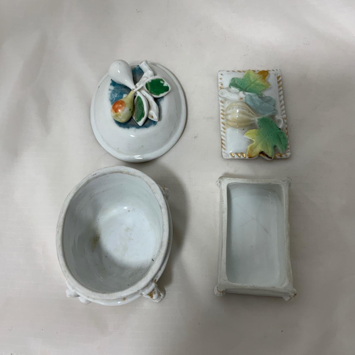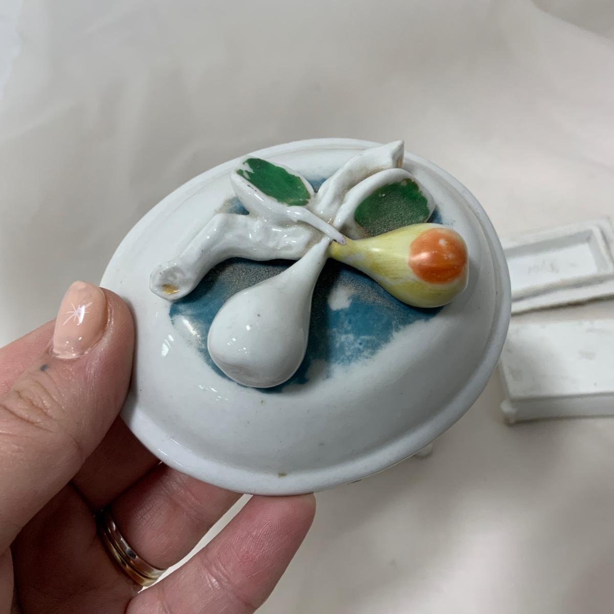 Two adorable Porcelain Fruit-Themed Trinket Boxes. Excellent for collecting or gift giving. Each of them hand painted with nice details. There is some wear on each of them, as to be expected being over 150 years old. Please see photos for details and condition. ::: Shipping is available on this lot. If you require shipping you must let us know at the close of the auction. We will coordinate with you after the item has been won. Shipping fees will include insurance up to or exceeding the value of all items being mailed. If you have any questions regarding this lot please contact the auctioneer either via this website, by direct email or by phone. PICK UP TIMES and other important information can be found in the TERMS and DESCRIPTION of the auction. Please take a look for pertinent information. Thanks!